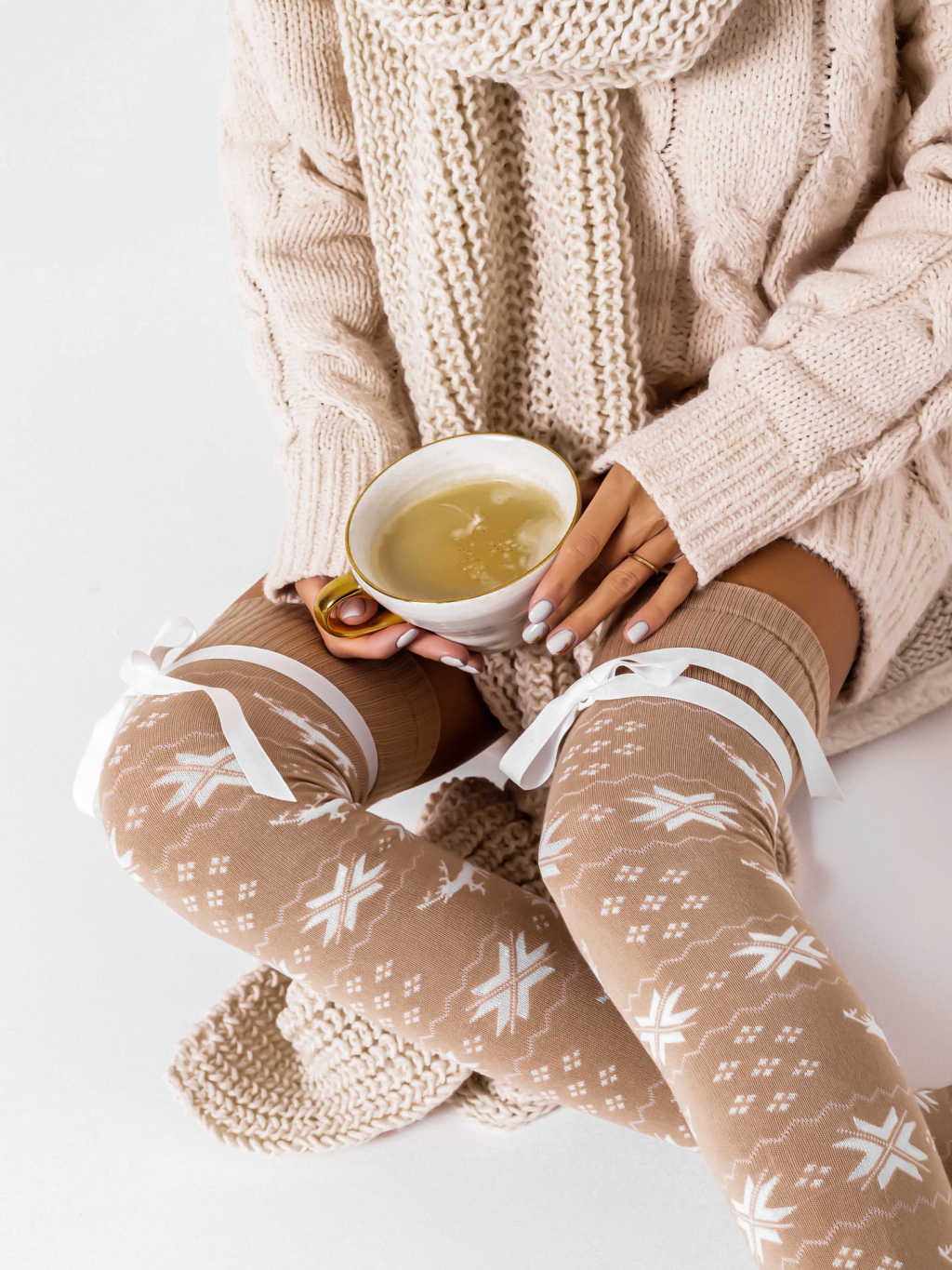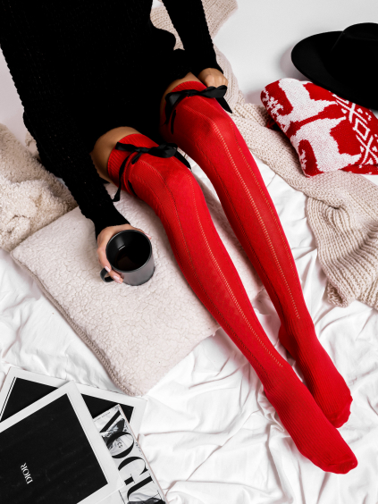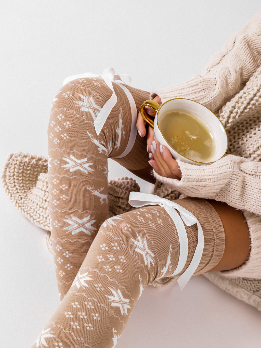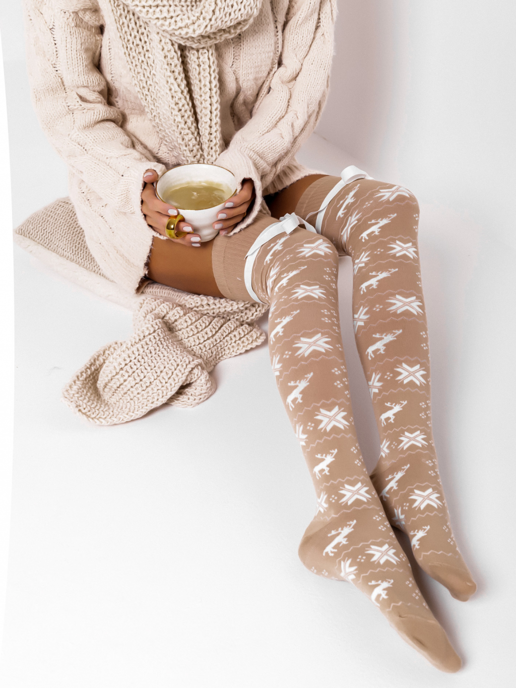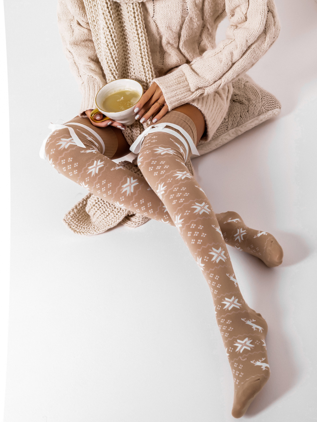 Béžové vzorované nadkolenky SLUMBER s mašlí