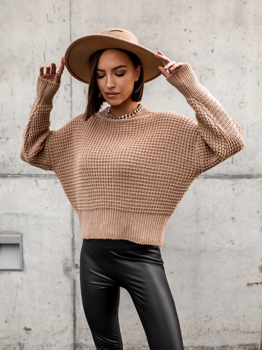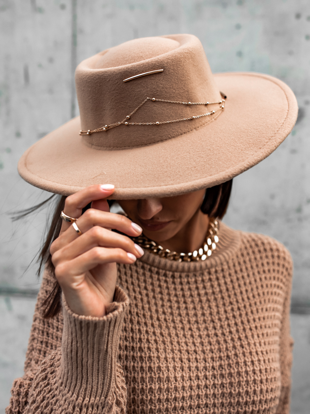 Béžový klobouk COINLY se zlatým řetízkem