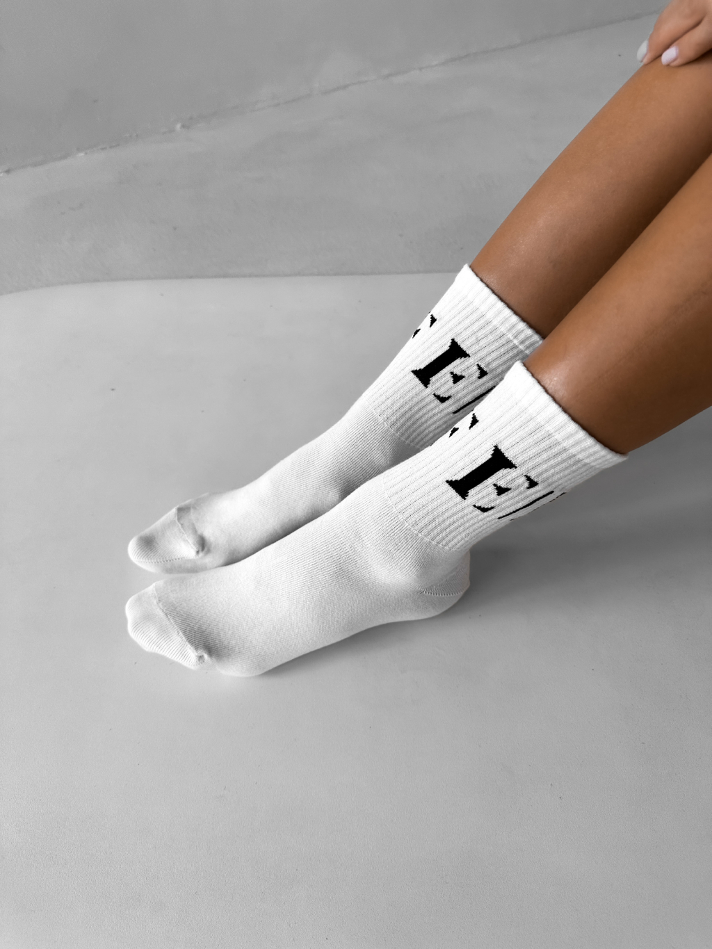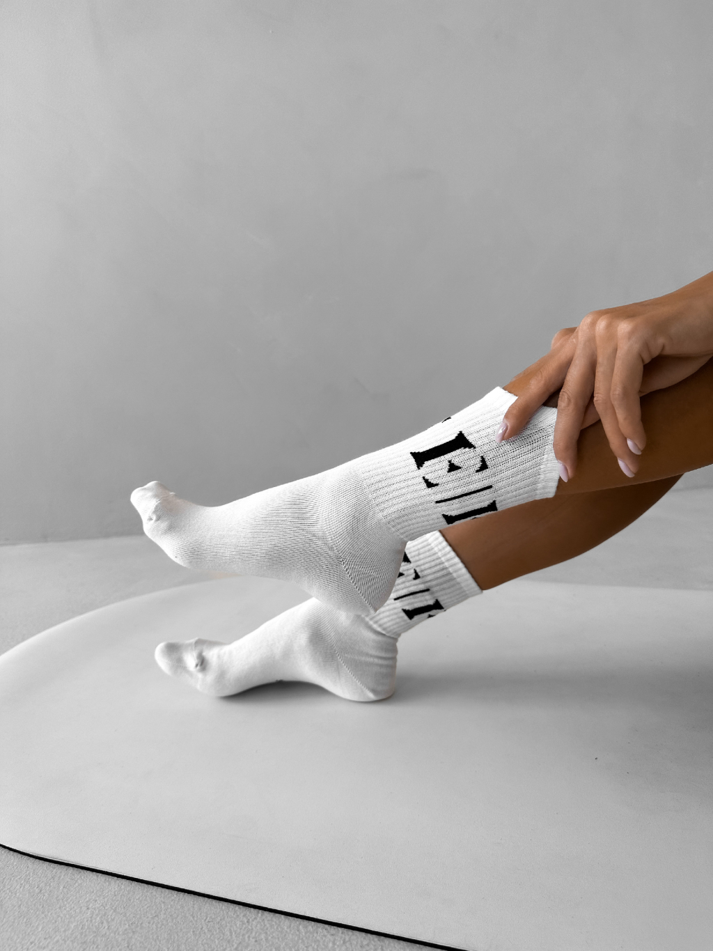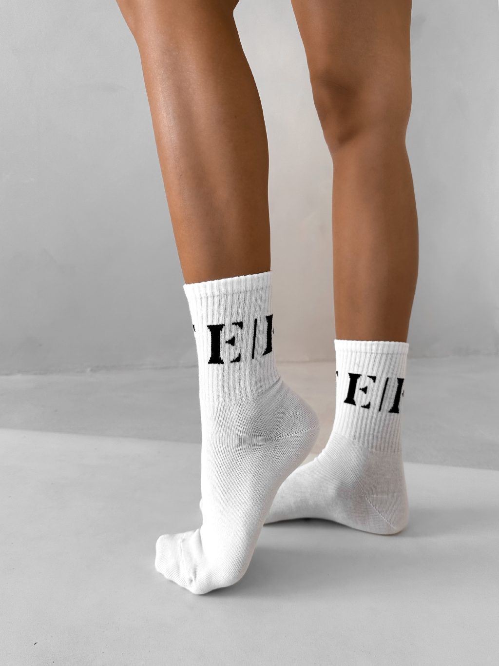 Bílé vysoké elastické ponožky Erika Fashion z příjemného materiálu.
