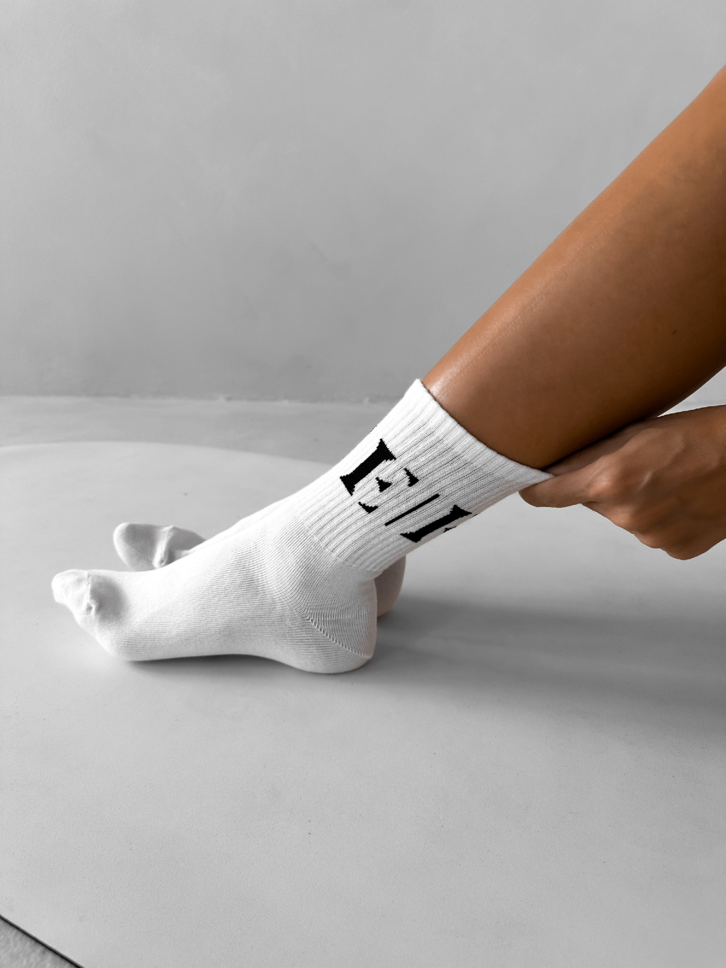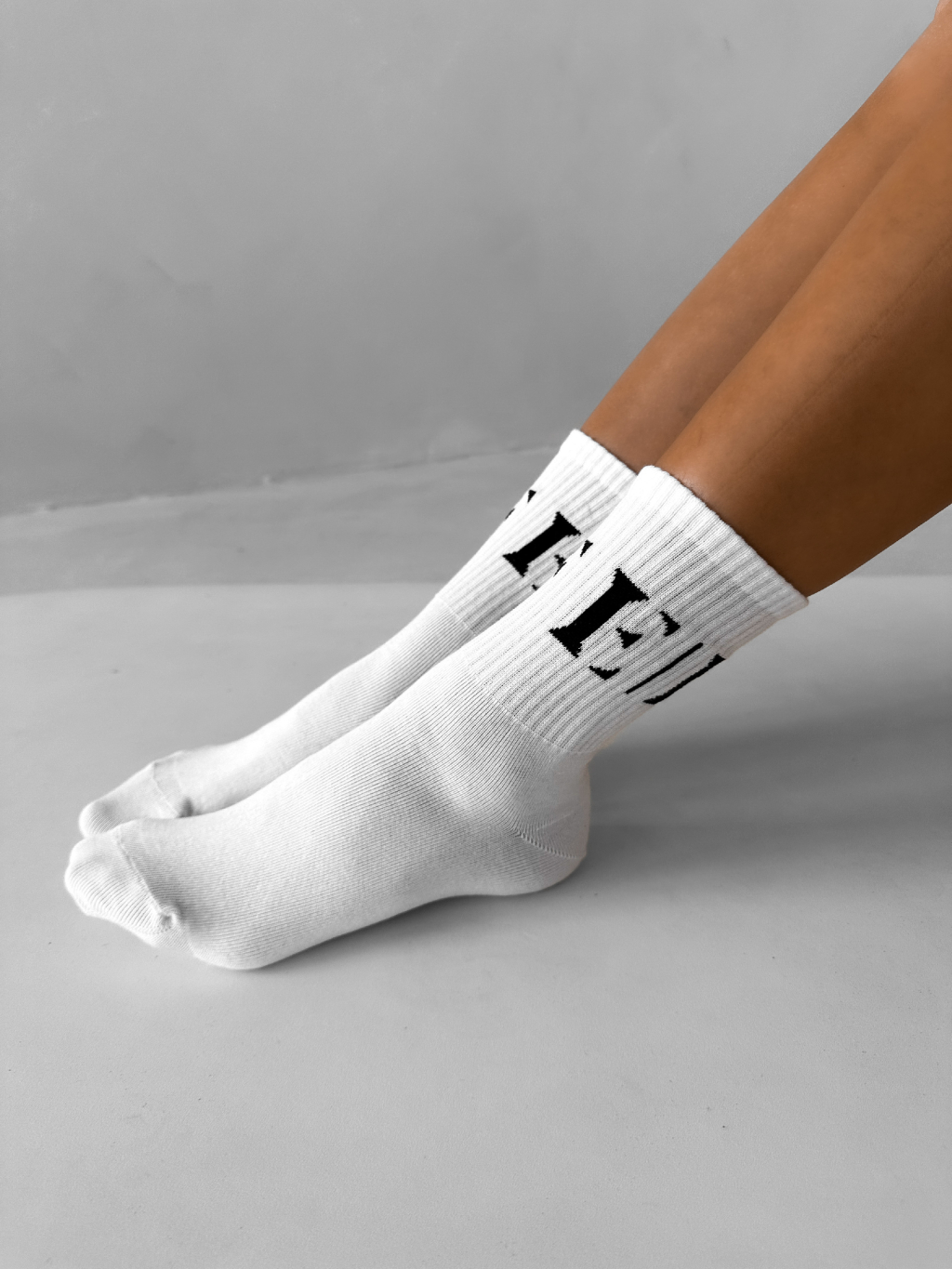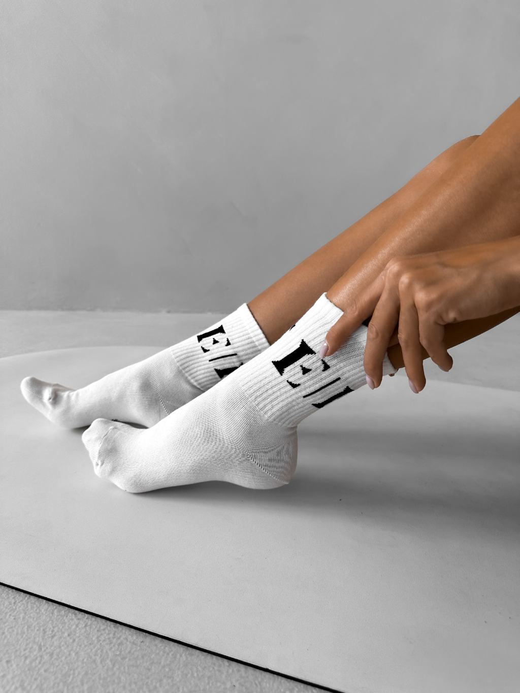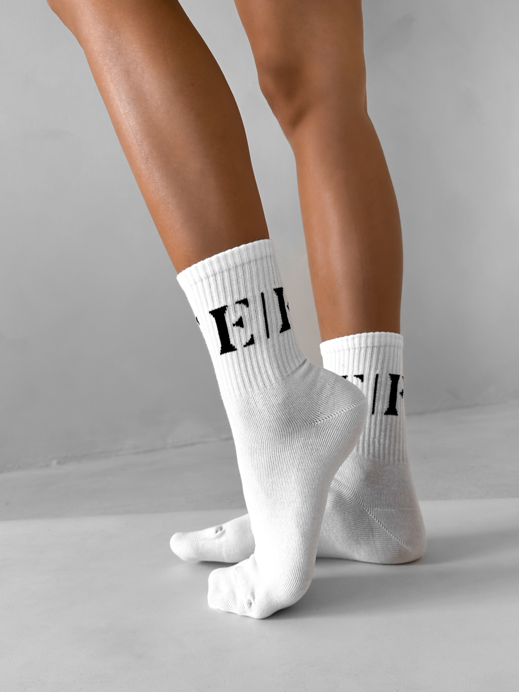 Bílé vysoké elastické ponožky Erika Fashion z příjemného materiálu.