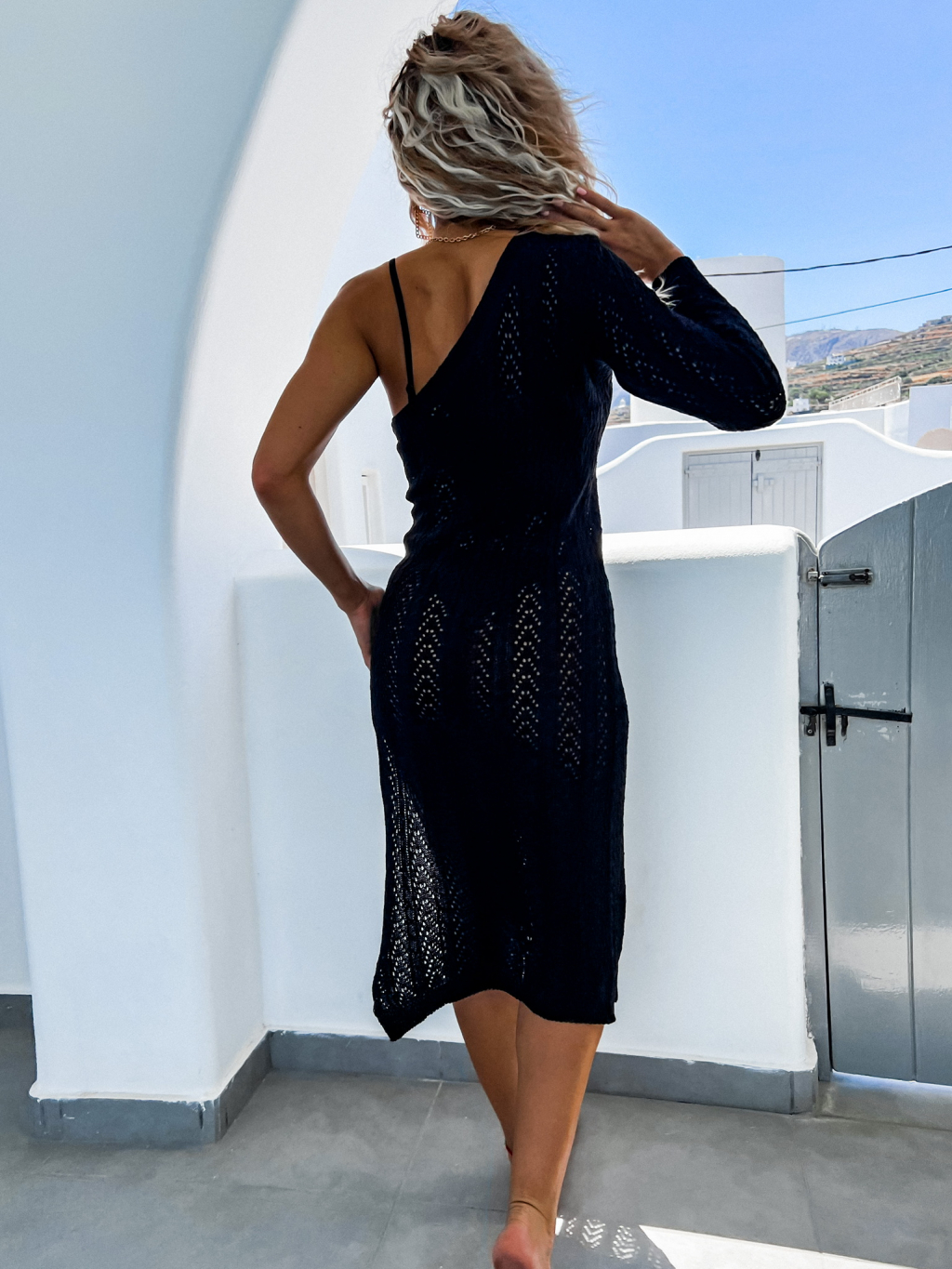 Černý elegantní přehoz přes plavky MARVEY na jedno rameno