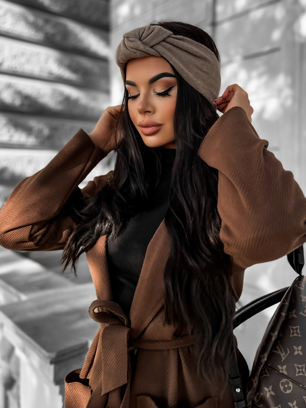 Hnědá zimní čelenka GOMITI