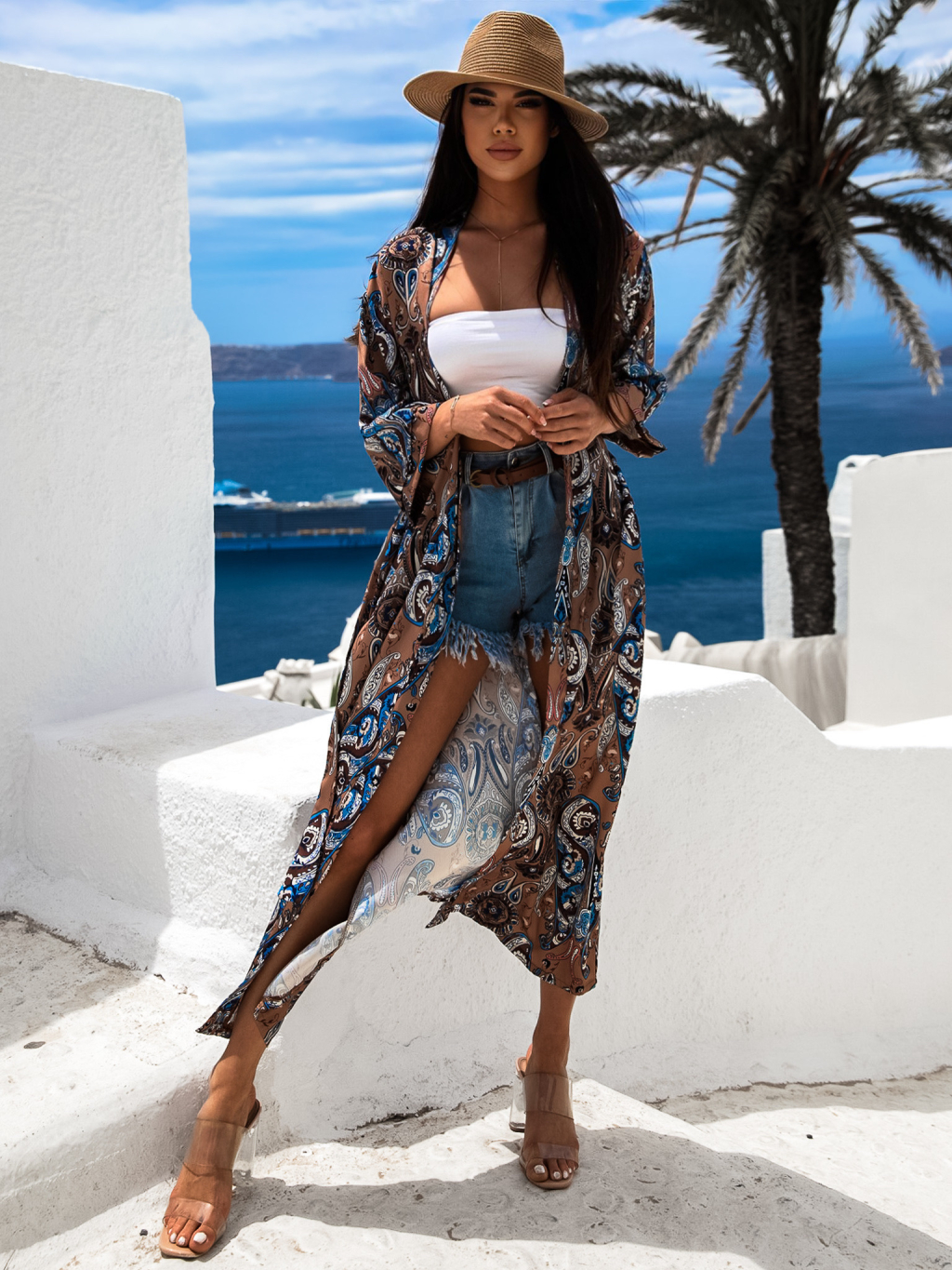 Hnědý elegantní přehoz MEMORY se zavazováním