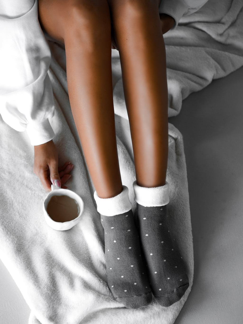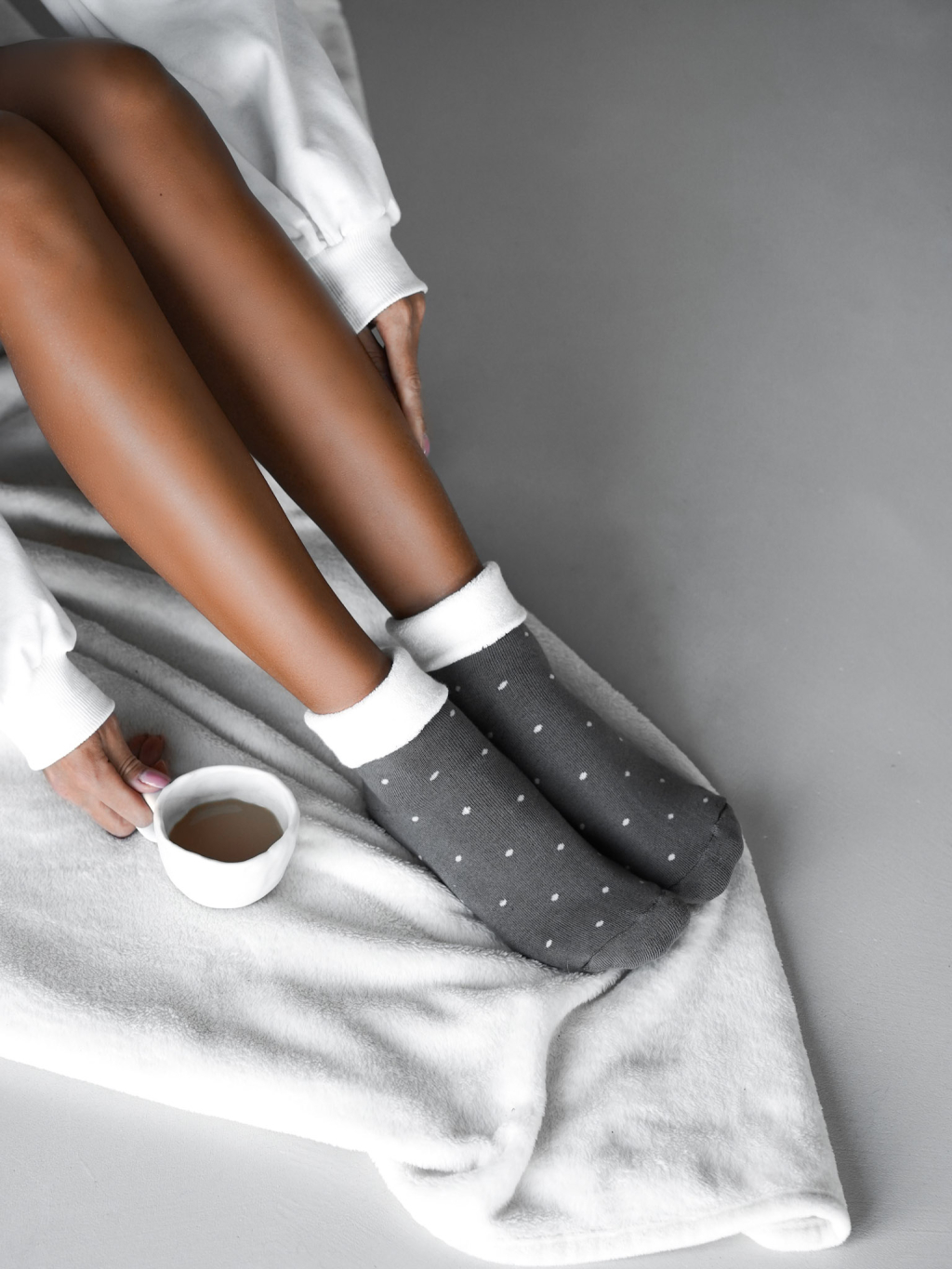 Šedé puntikaté teplé ponožky SCENTED