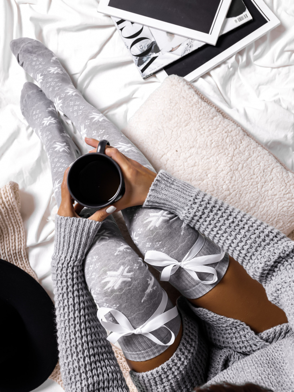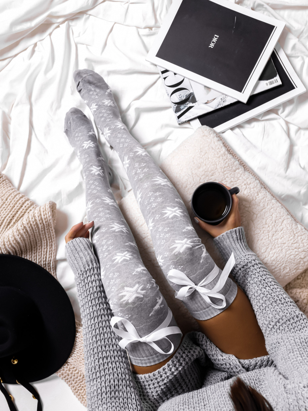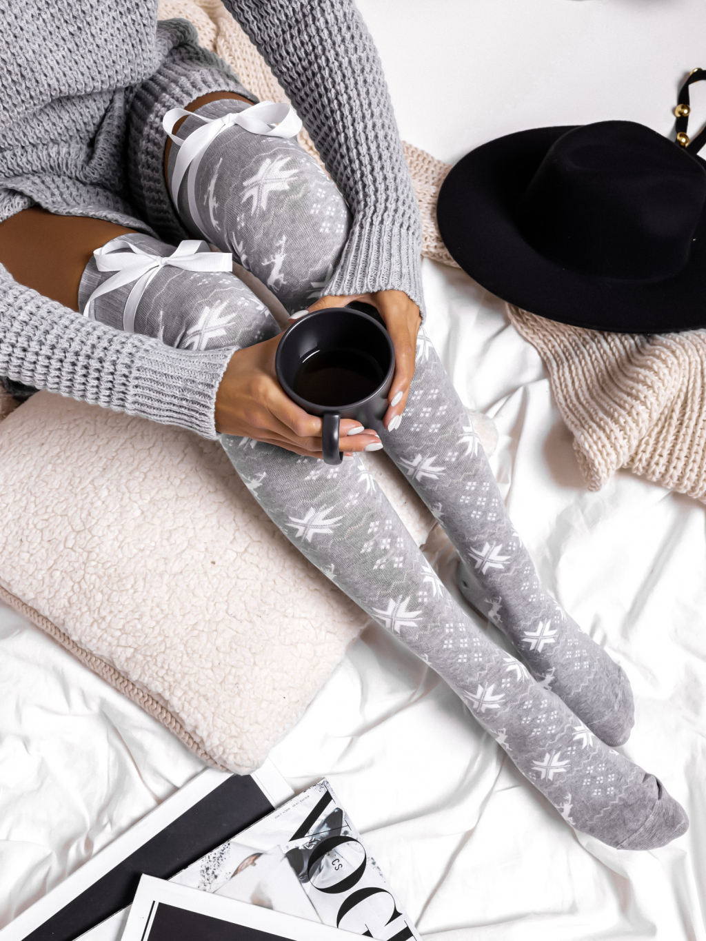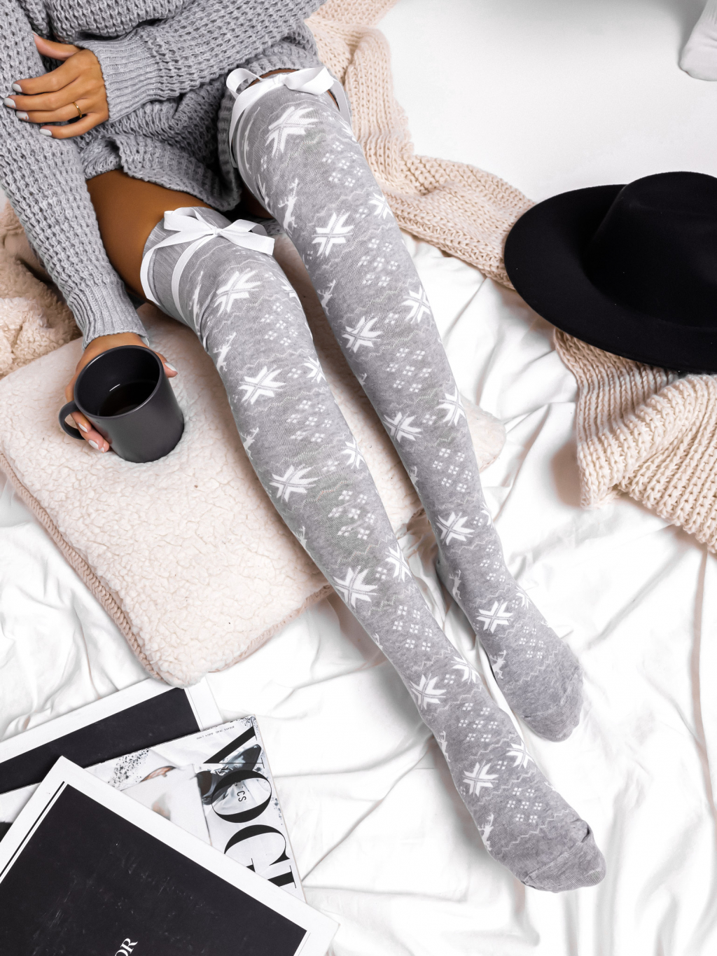 Šedé vzorované nadkolenky SLUMBER s mašlí