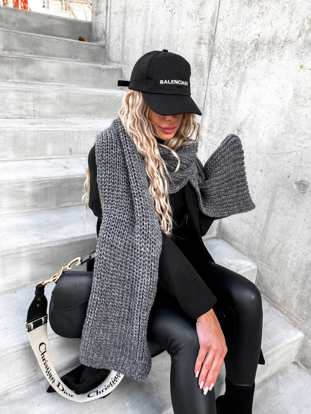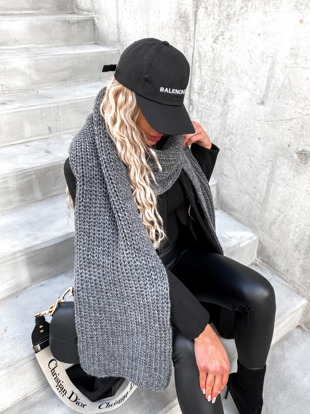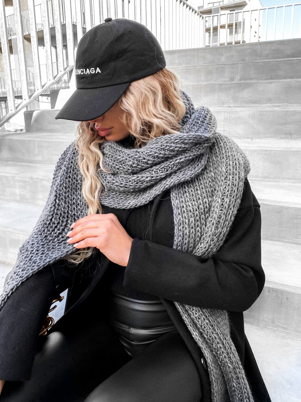 Tmavě šedá pletená šála GRANTED