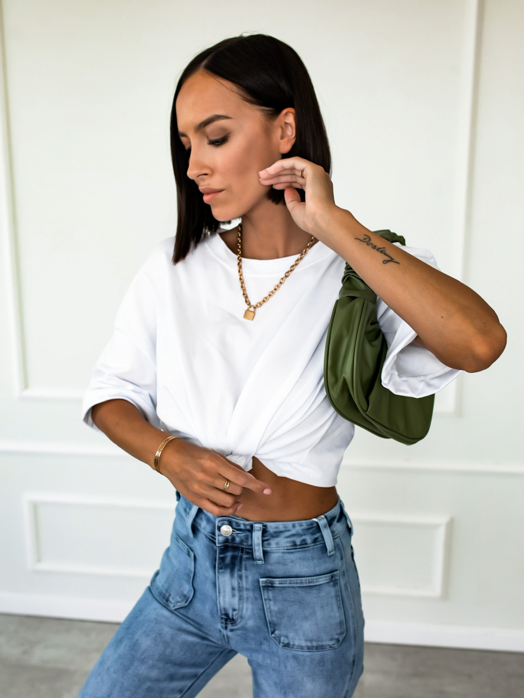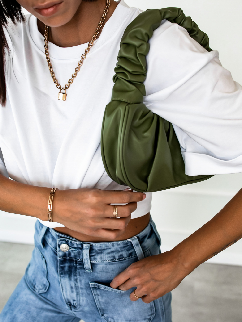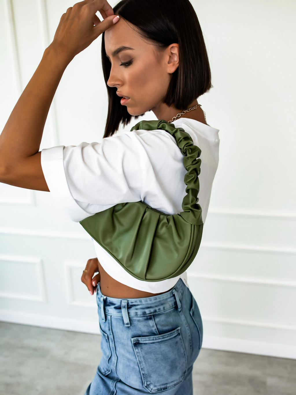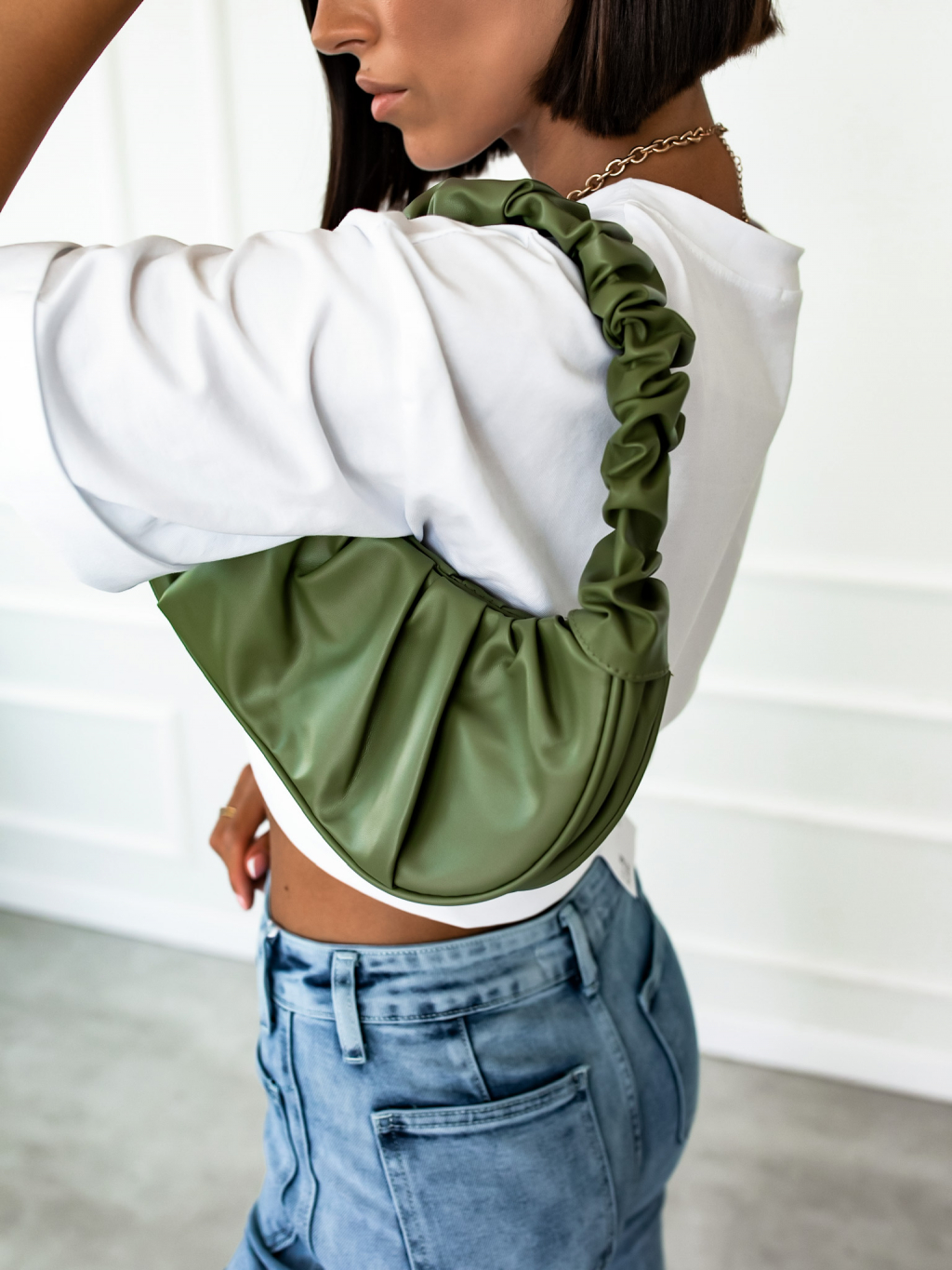 Tmavě zelená kabelka SHARON s řasením