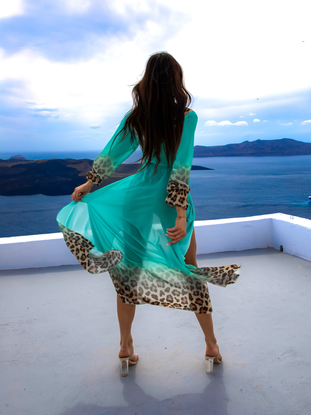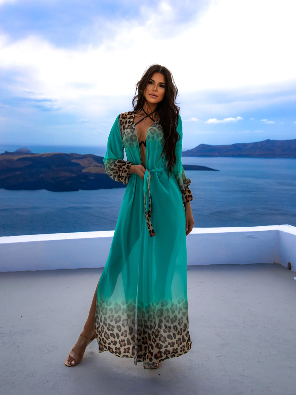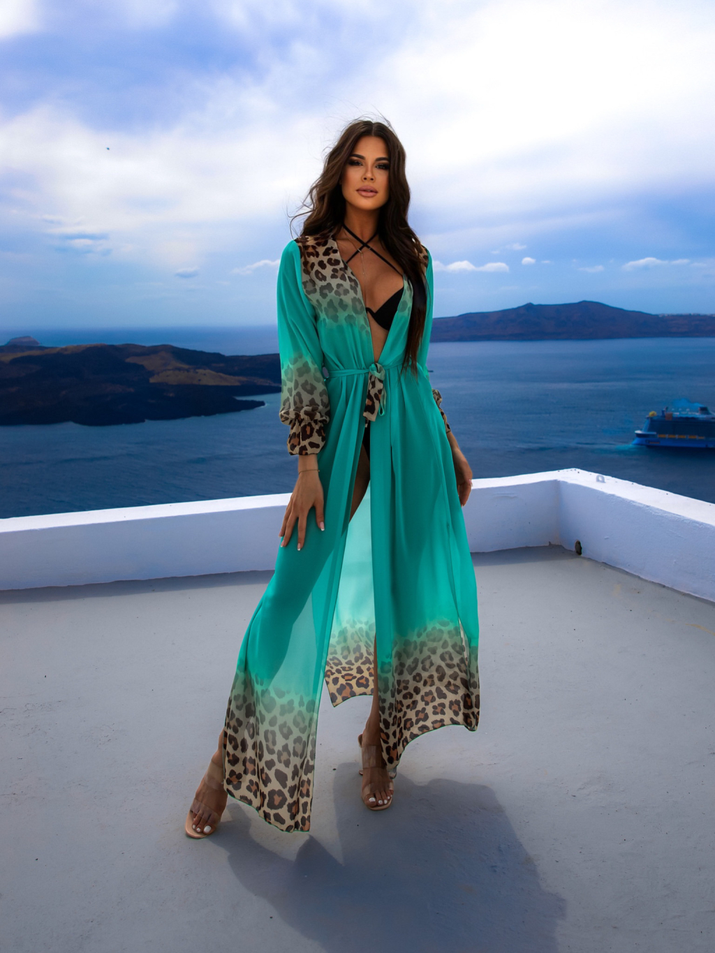 Zelený lehký přehoz DESIRE s leopardím vzorem
