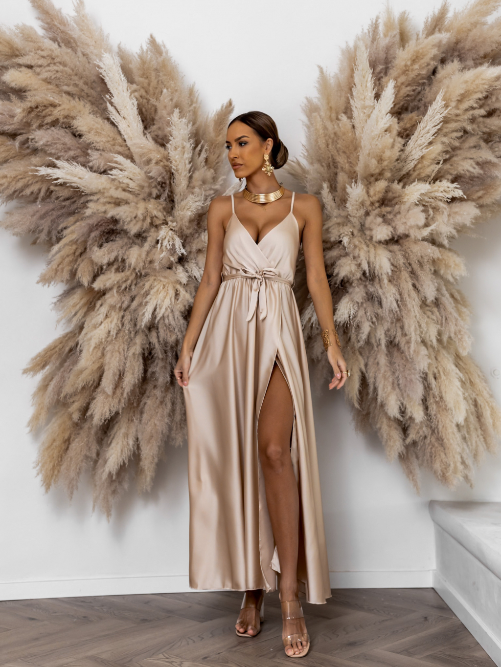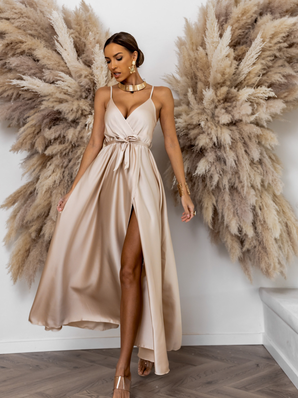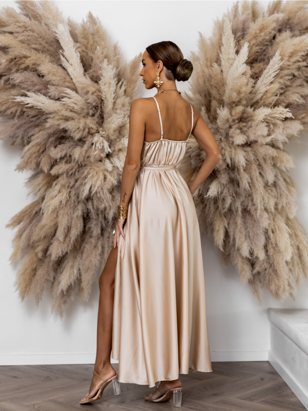 Béžové dlouhé šaty FAIRYTALE s rozparkem