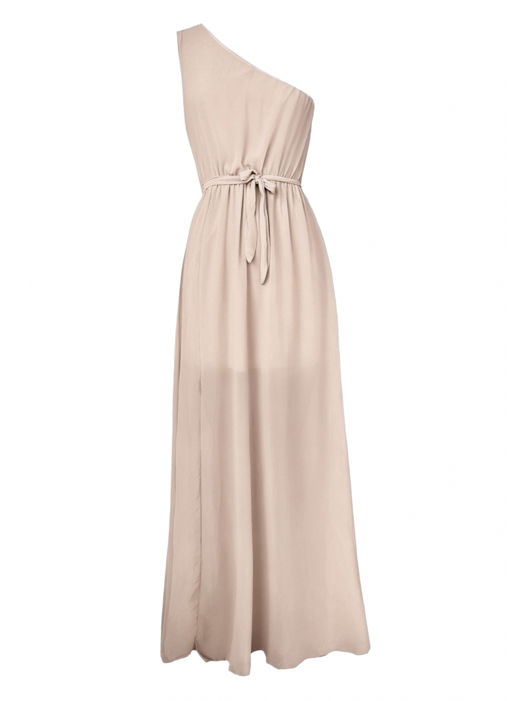 Béžové lehké dlouhé šaty POPPI na jedno rameno
