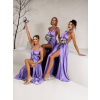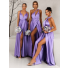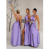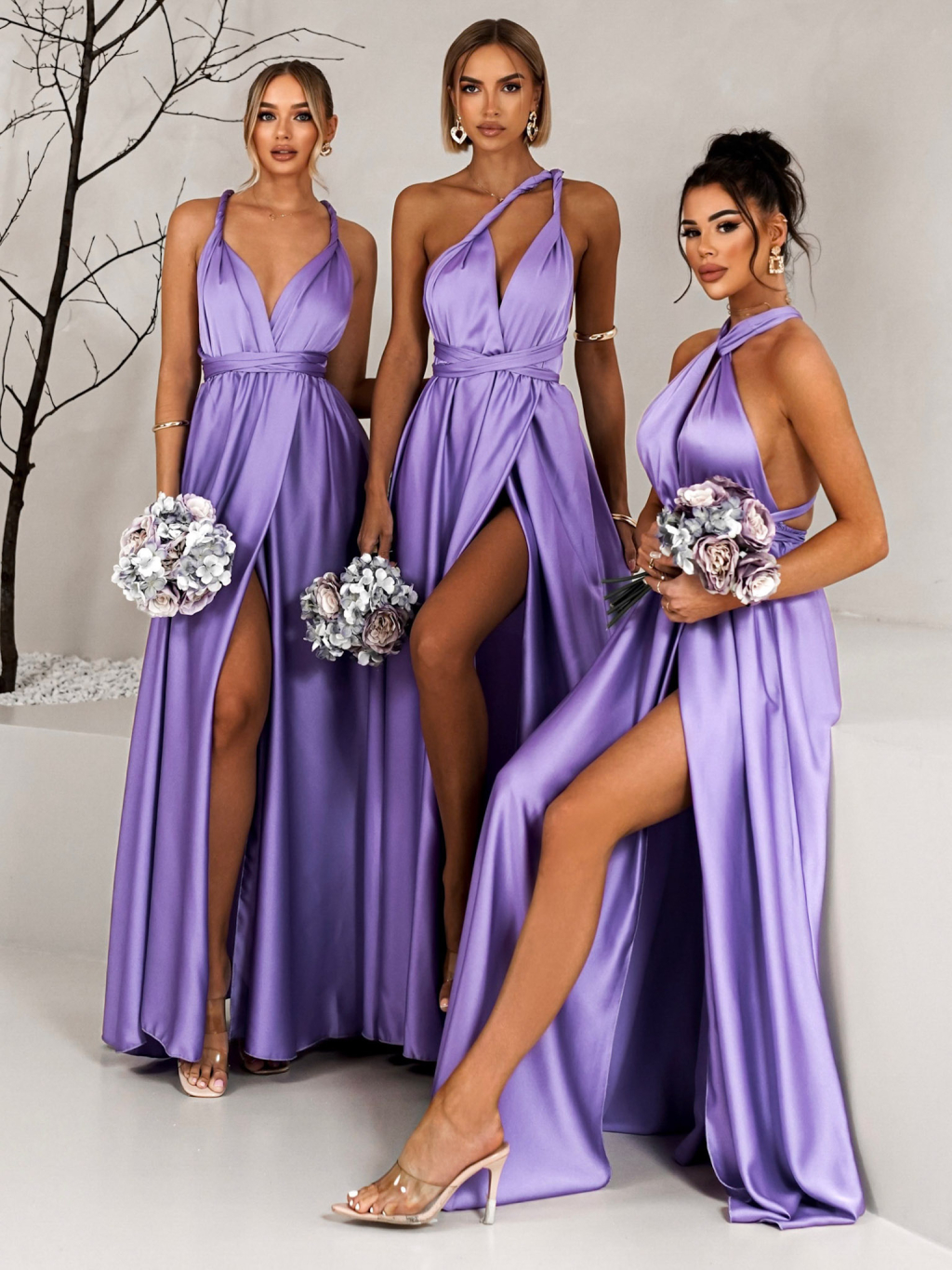 Fialové šaty VALERDI s variabilním vázáním a rozparkem pro družičky