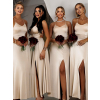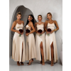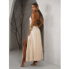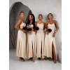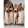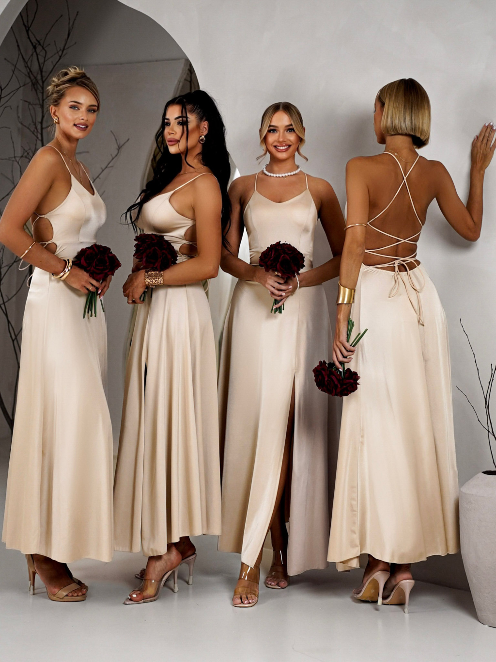Krémové saténové dlouhé šaty SIMUEL pro družičky se šněrováním