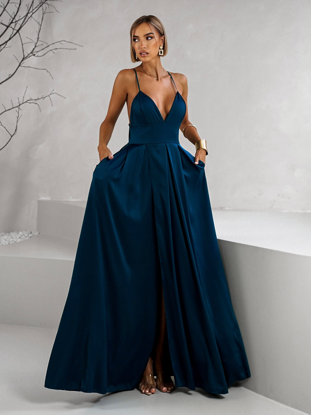 Petrolejové dlouhé šaty BREALYN pro družičky s kapsami