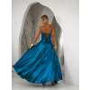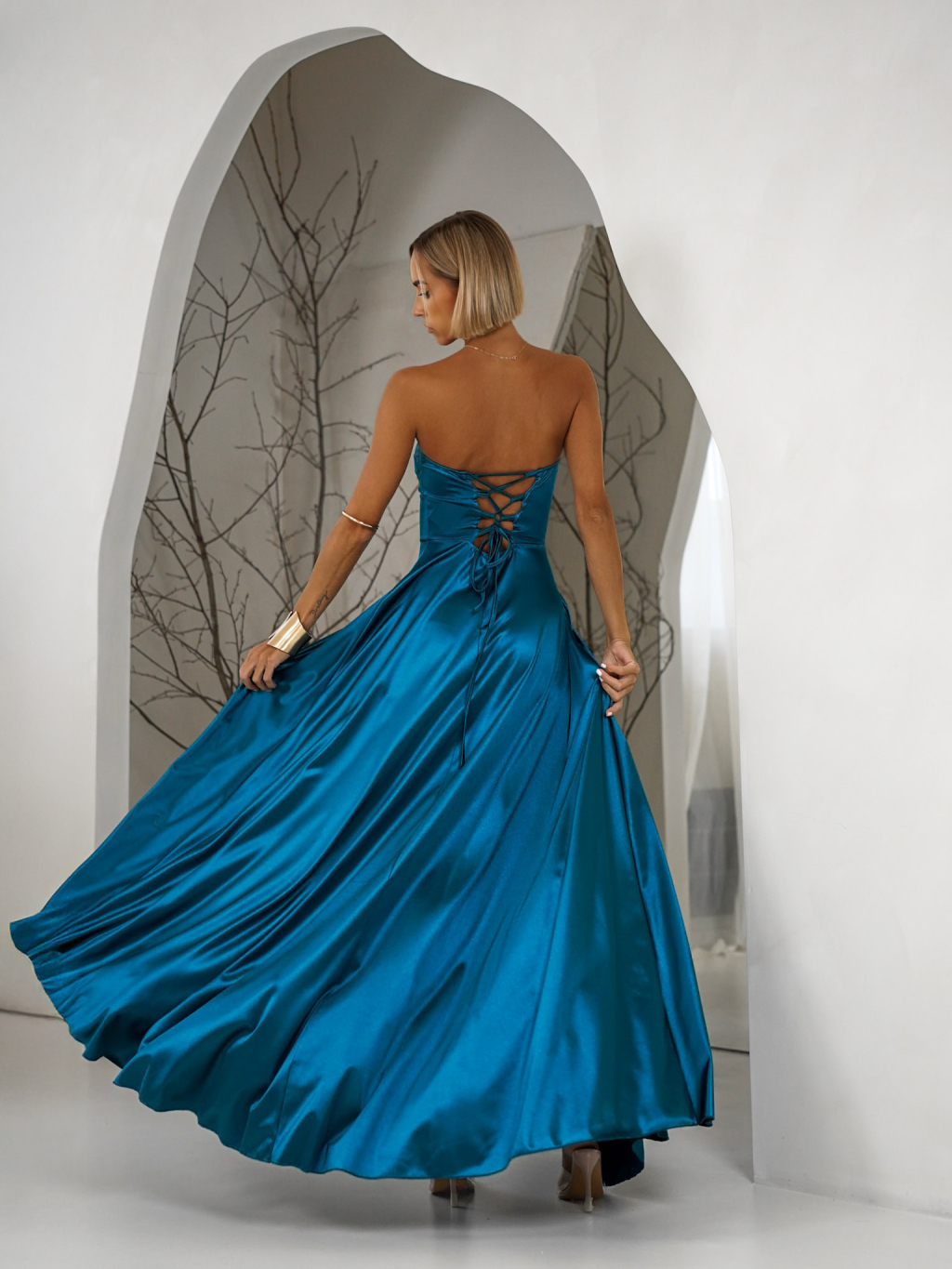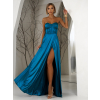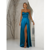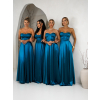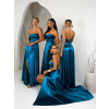 Petrolejové saténové dlouhé šaty GYBRAL pro družičky s rozparkem