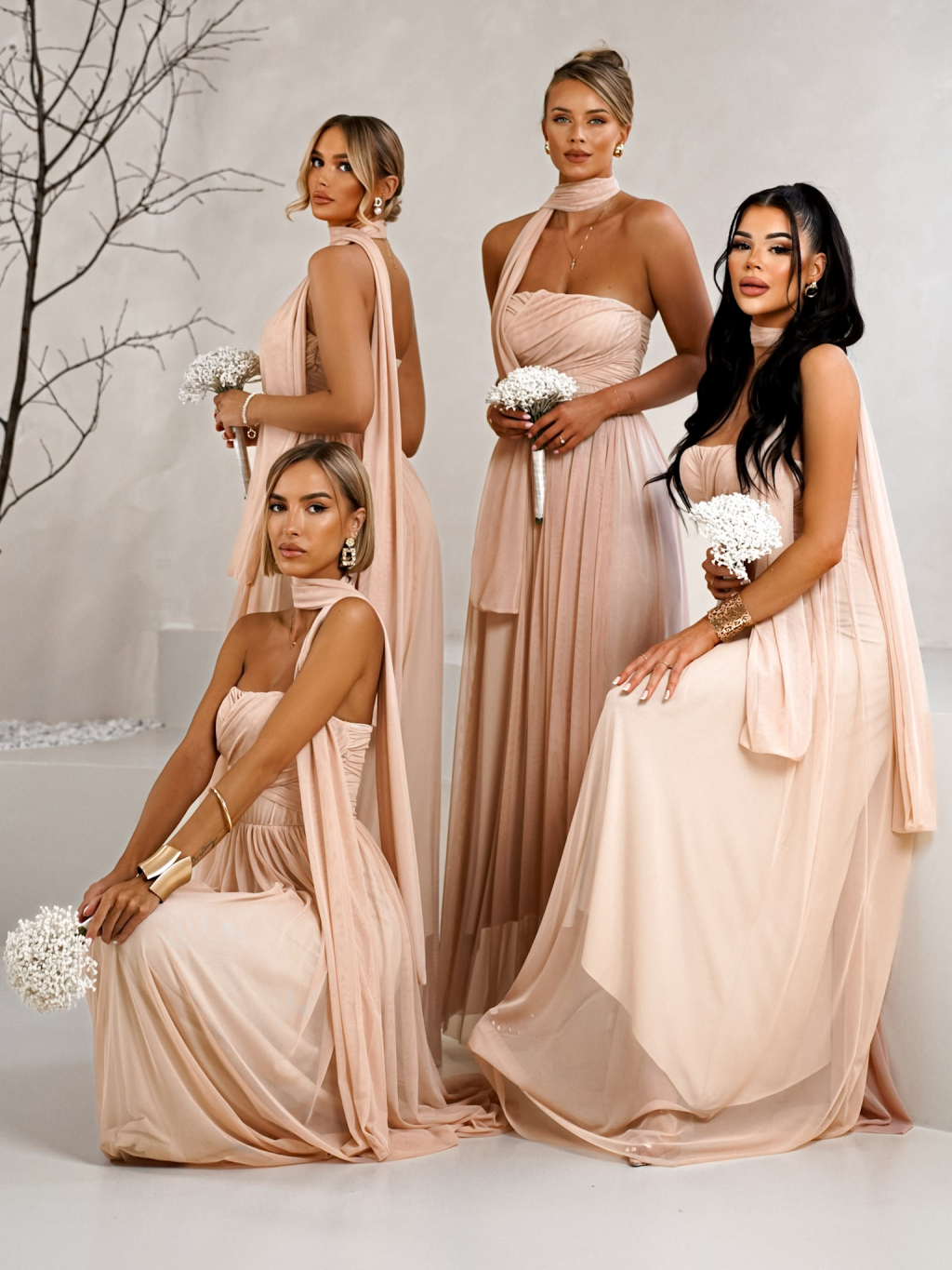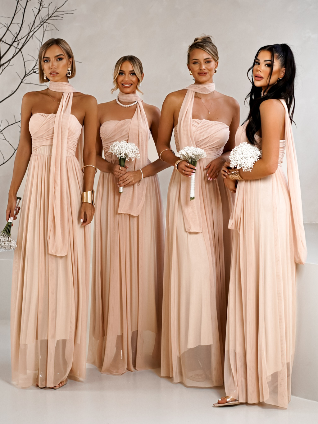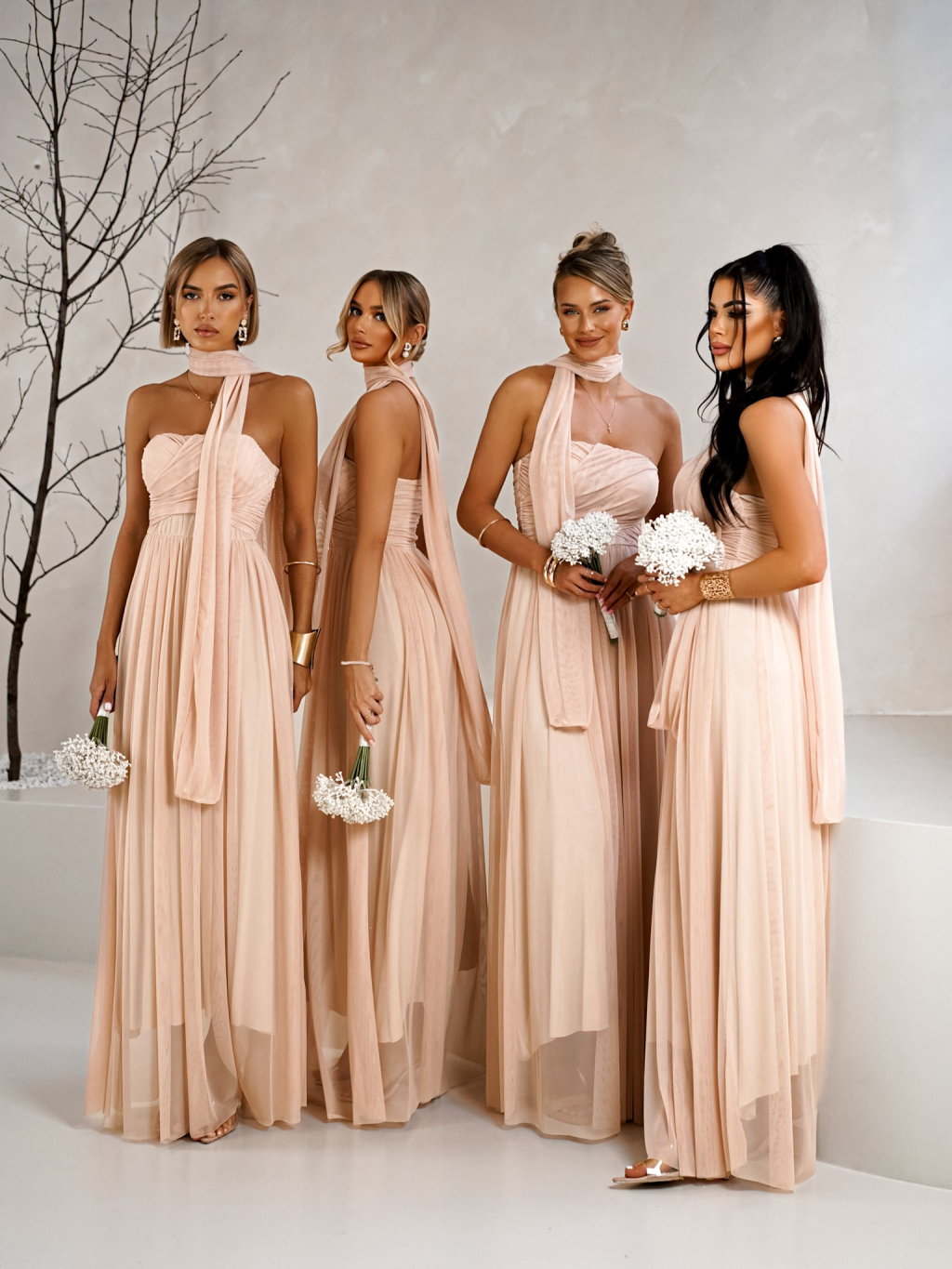 Pudrové tylové šaty BOLEMIR pro družičky s vlečkou