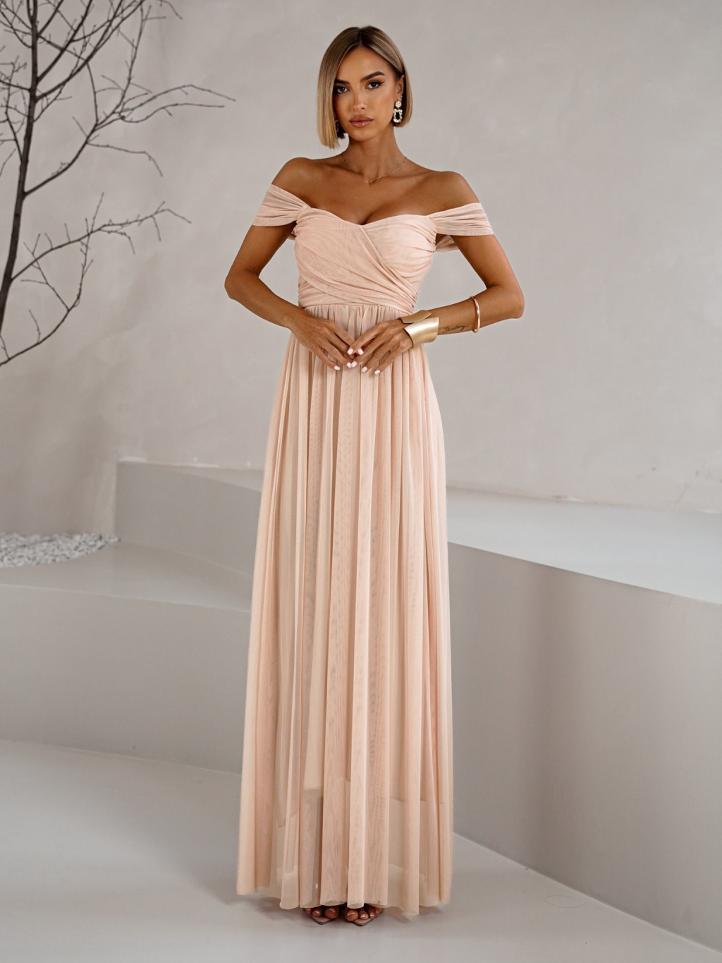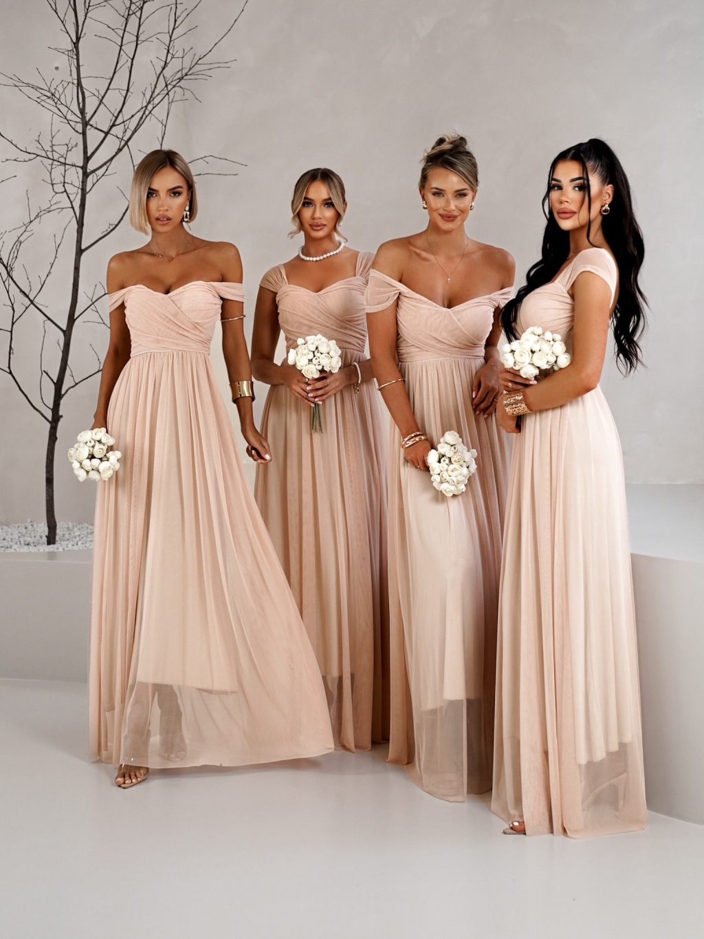Pudrové tylové šaty BOSCO pro družičky