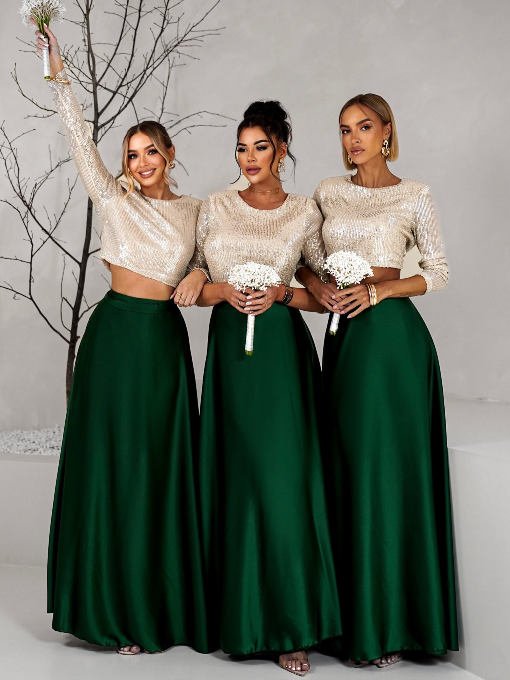Smaragdová zavinovací dlouhá saténová sukně DENISSE pro družičky