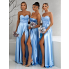 Světle modré dlouhé šaty SYCHAEUS pro družičky bez ramínek