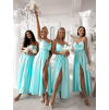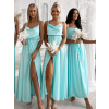 Světle modré lesklé elegantní šaty JOSEPHINE s rozparkem