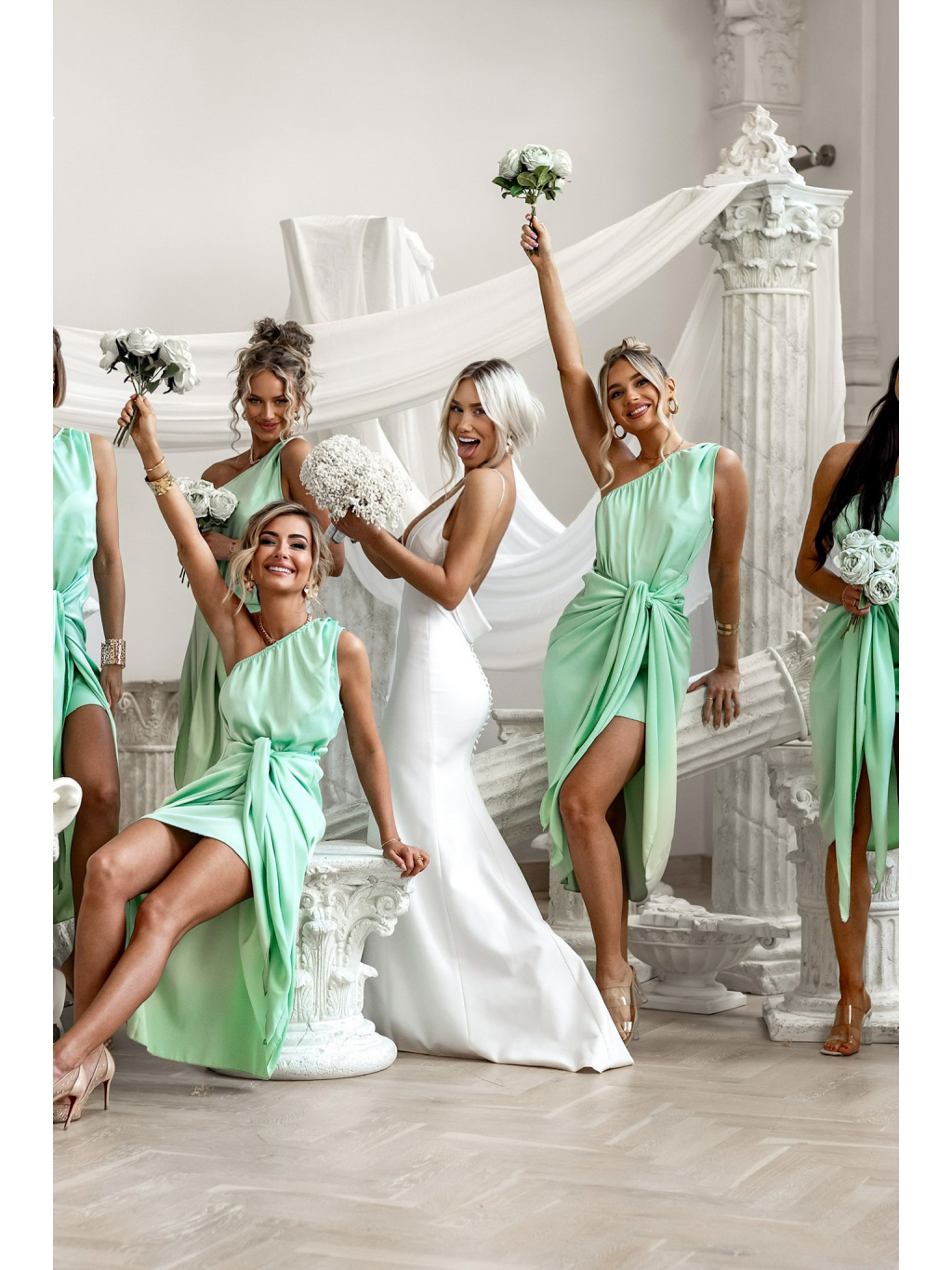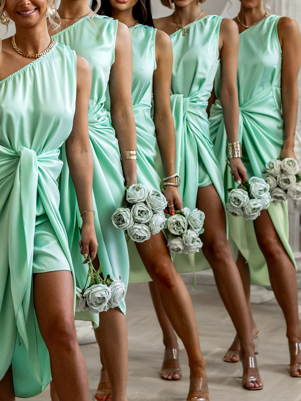 Světle zelené saténové midi šaty LIBIOSI pro družičky