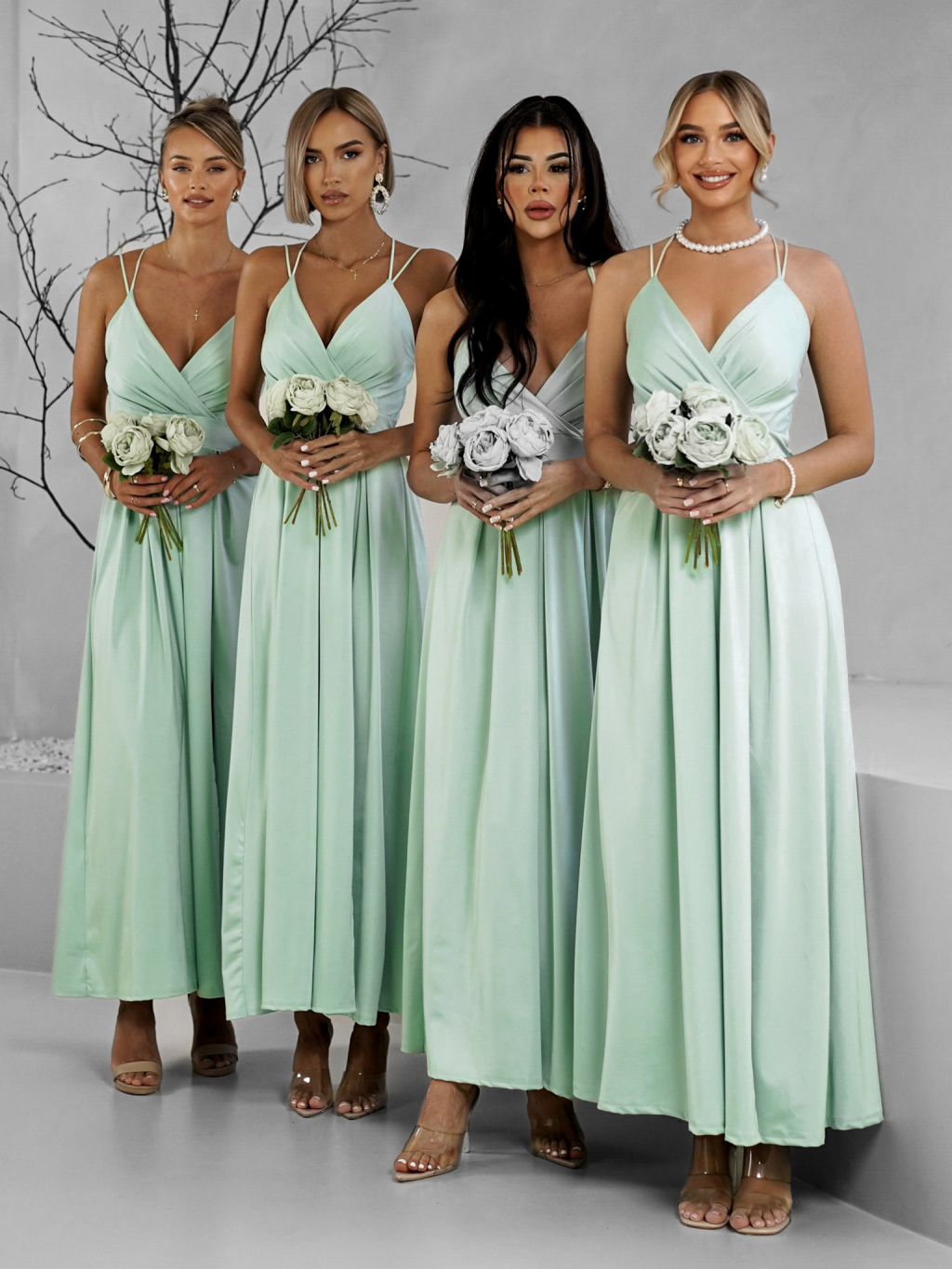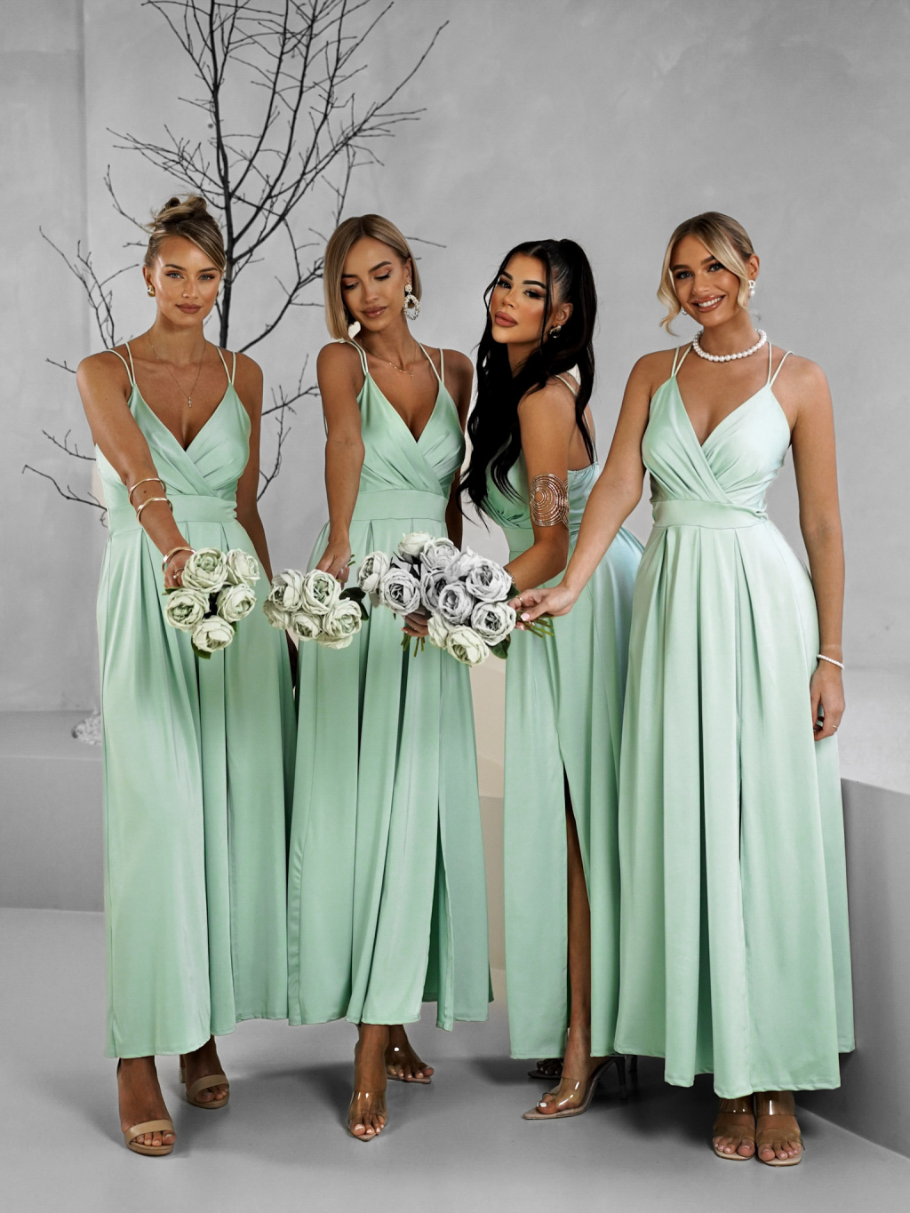Světle zelené šaty SAURANA pro družičky s rozparkem