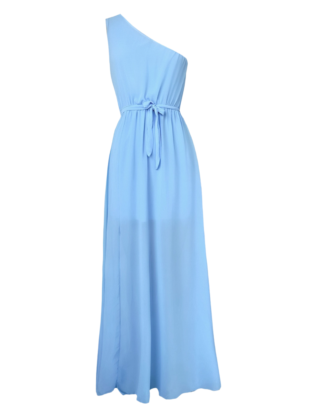 Světlomodré lehké dlouhé šaty POPPI na jedno rameno