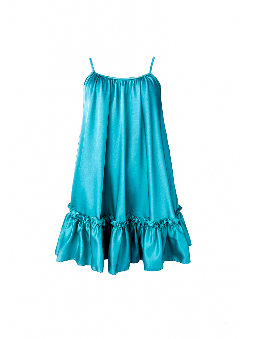 Tyrkysové volánkové šaty CLOUDY volného střihu