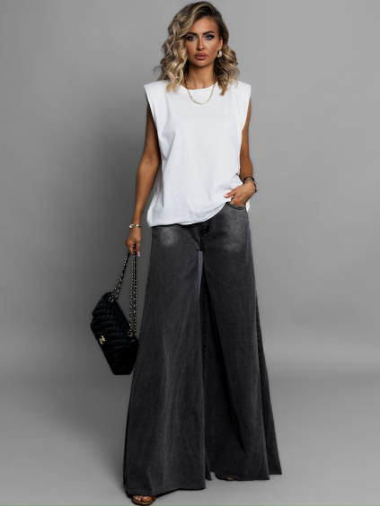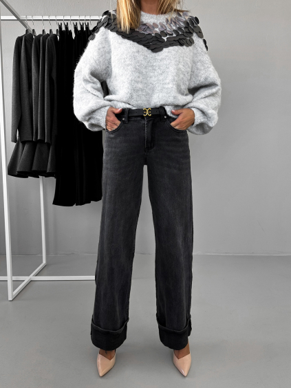 Černé extra wide leg džíny GRETY se širokými nohavicemi