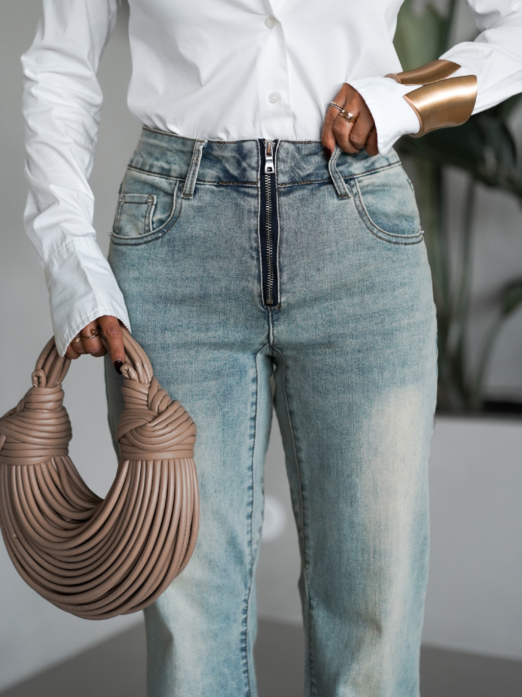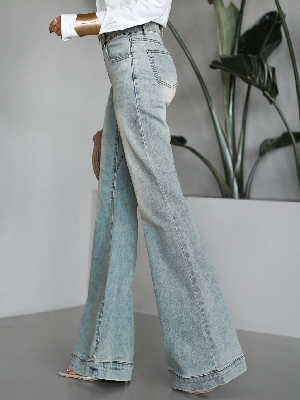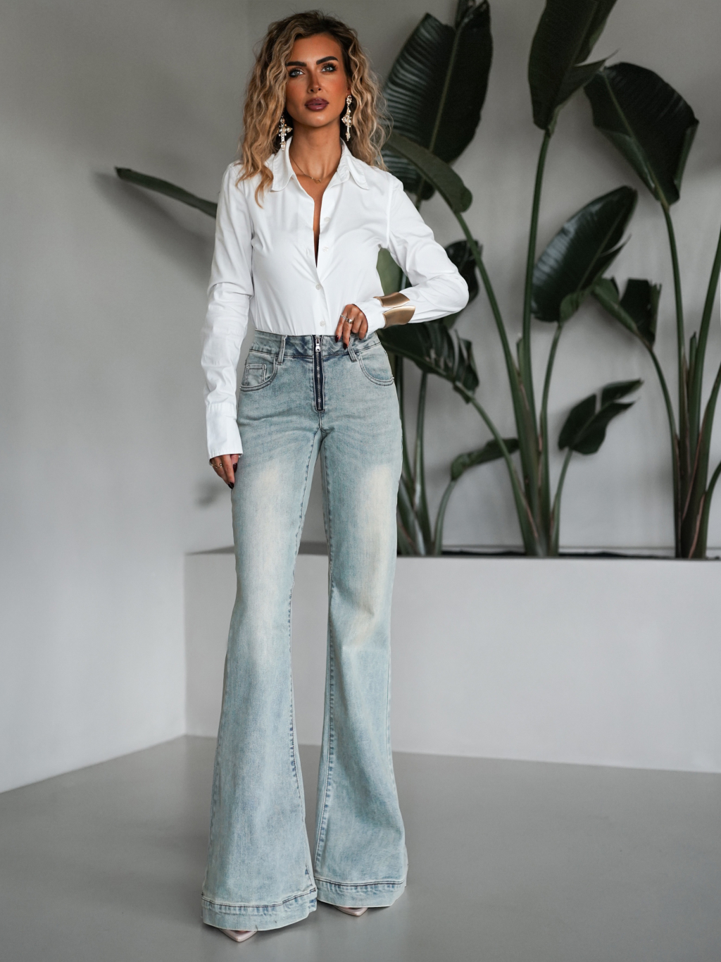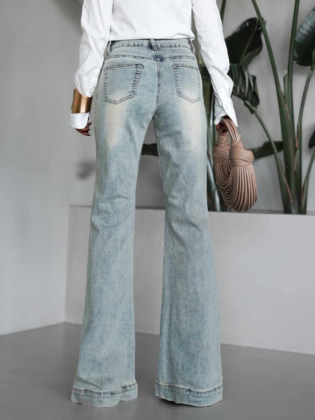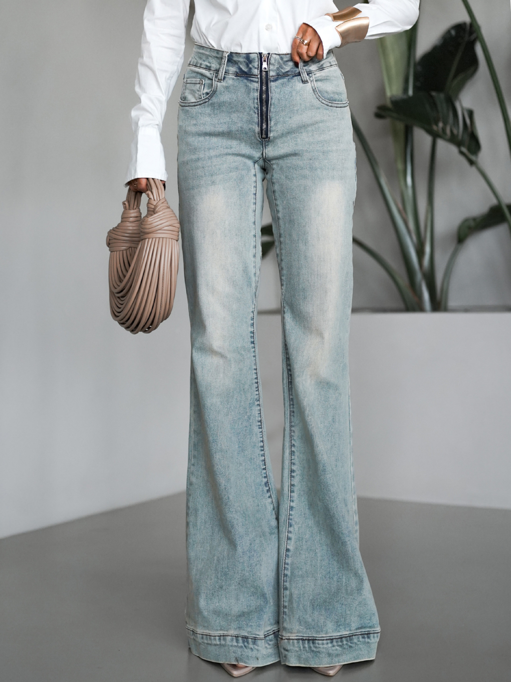 Modrozelené zvonové stylové džíny MANTASEL se zipem