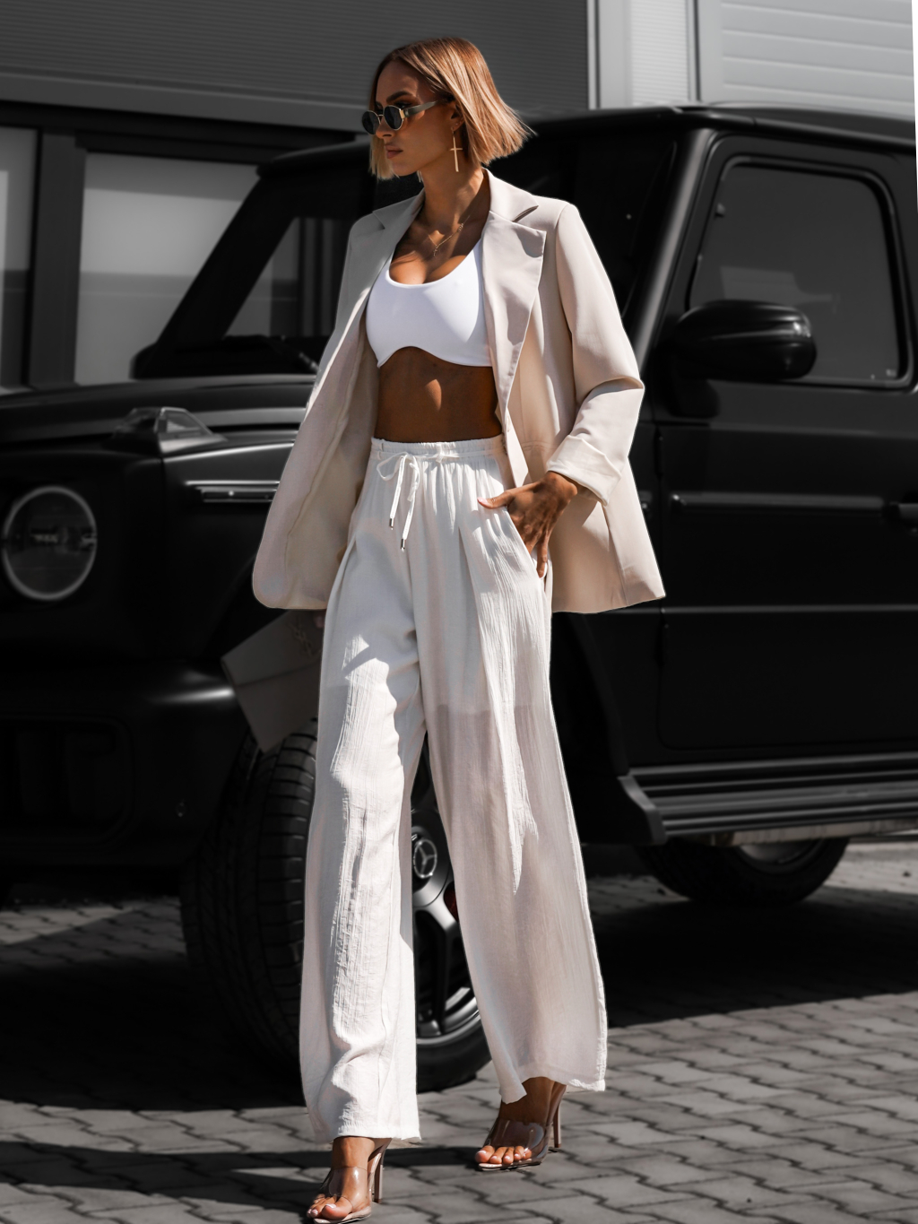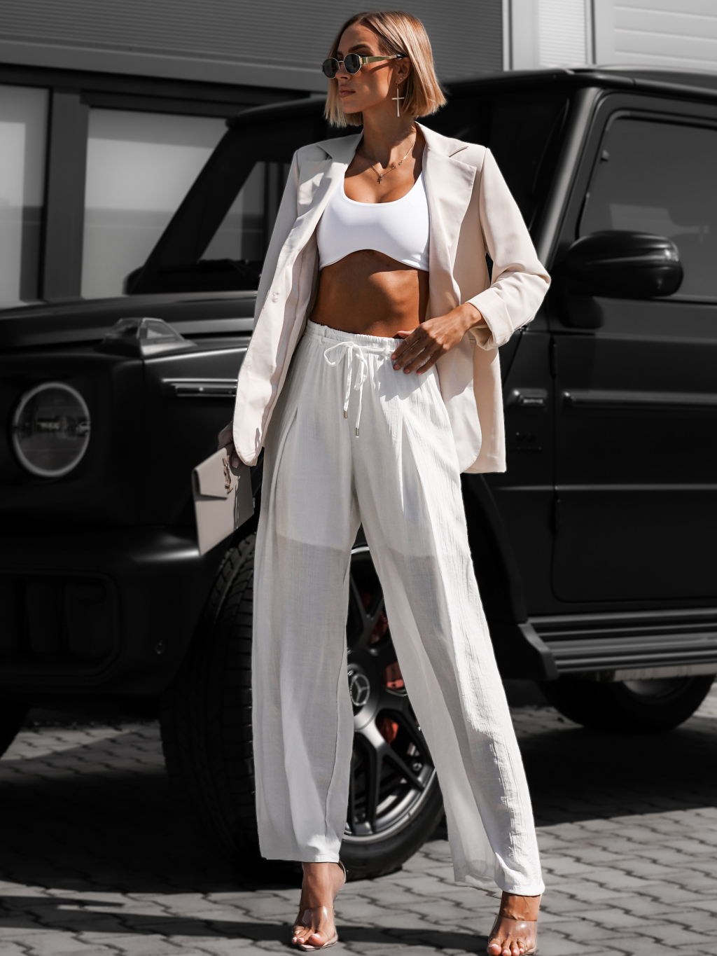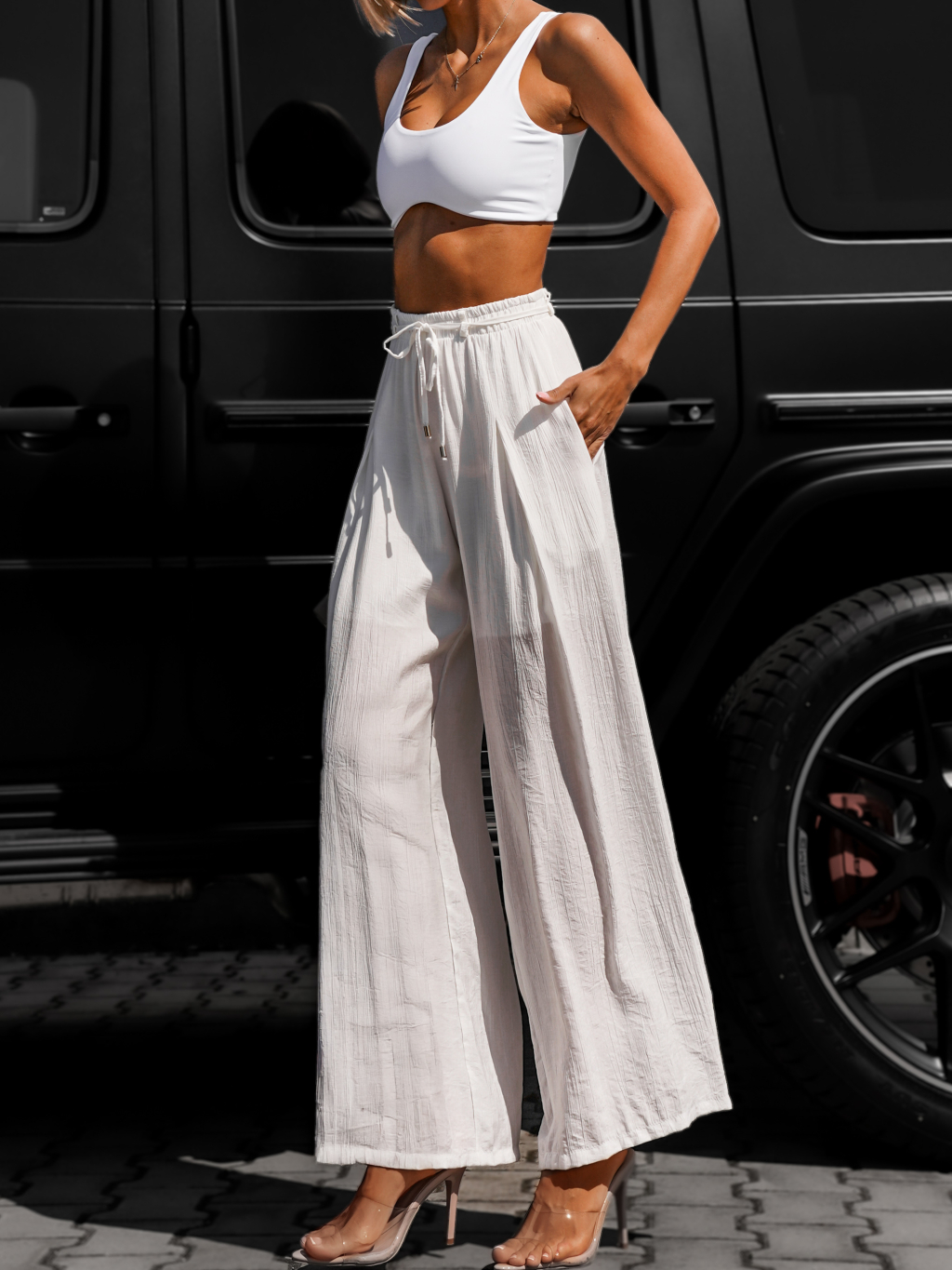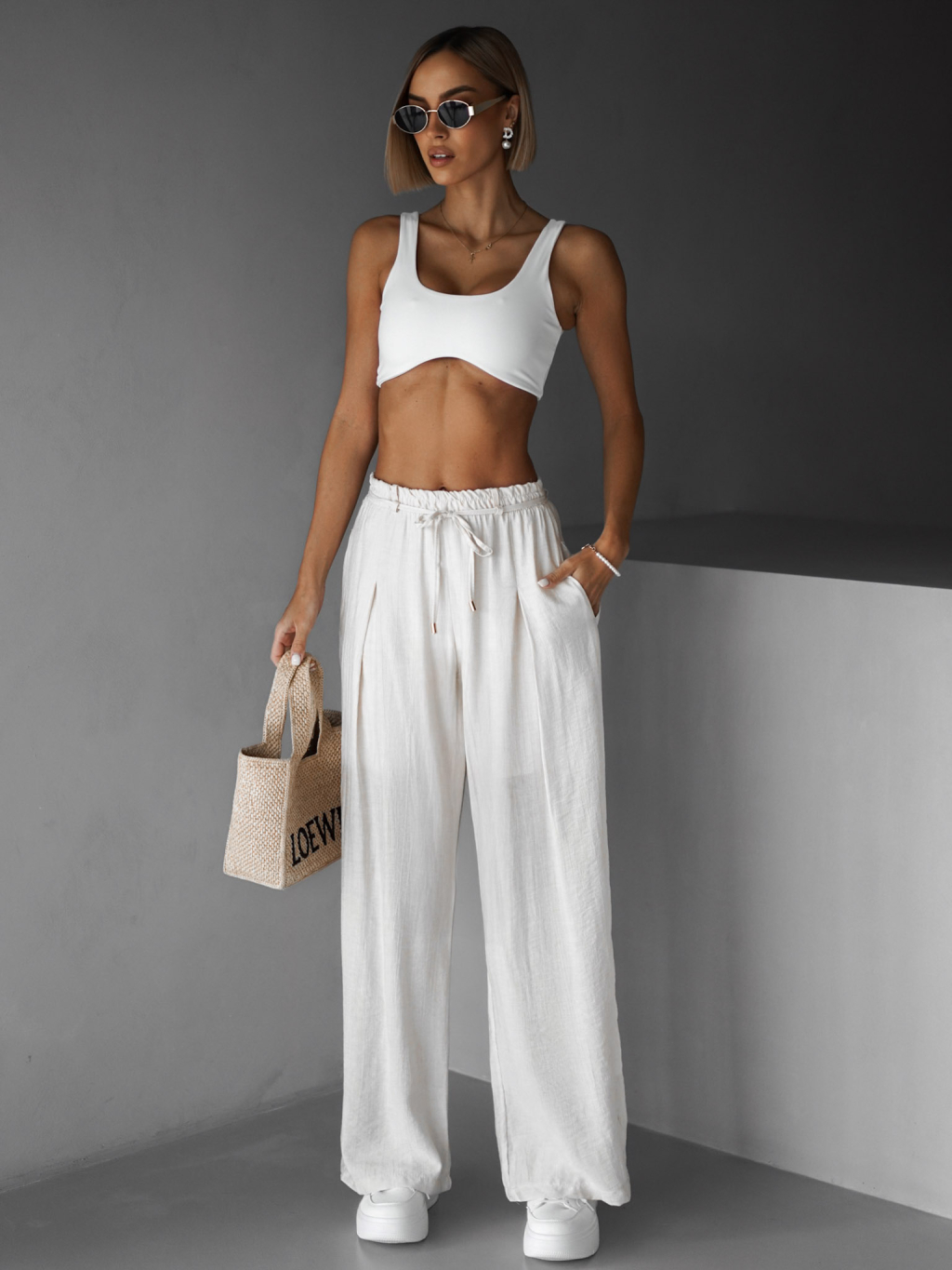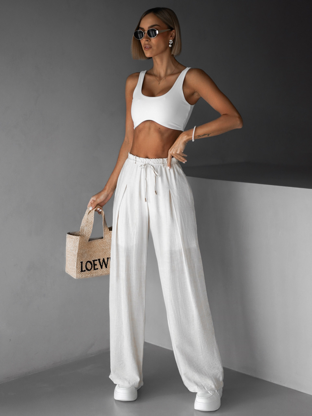 Bílé široké kalhoty LARYS