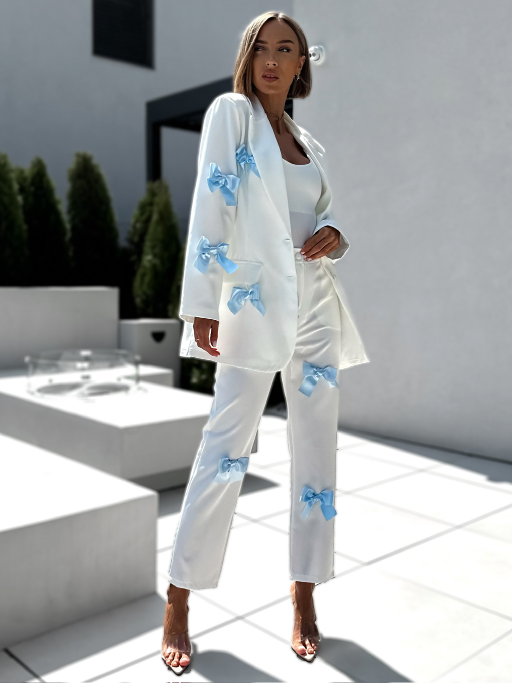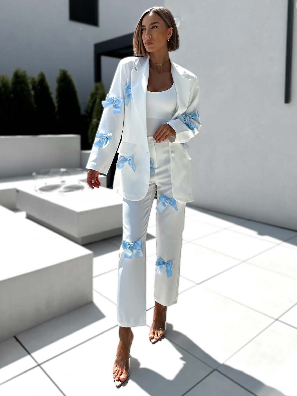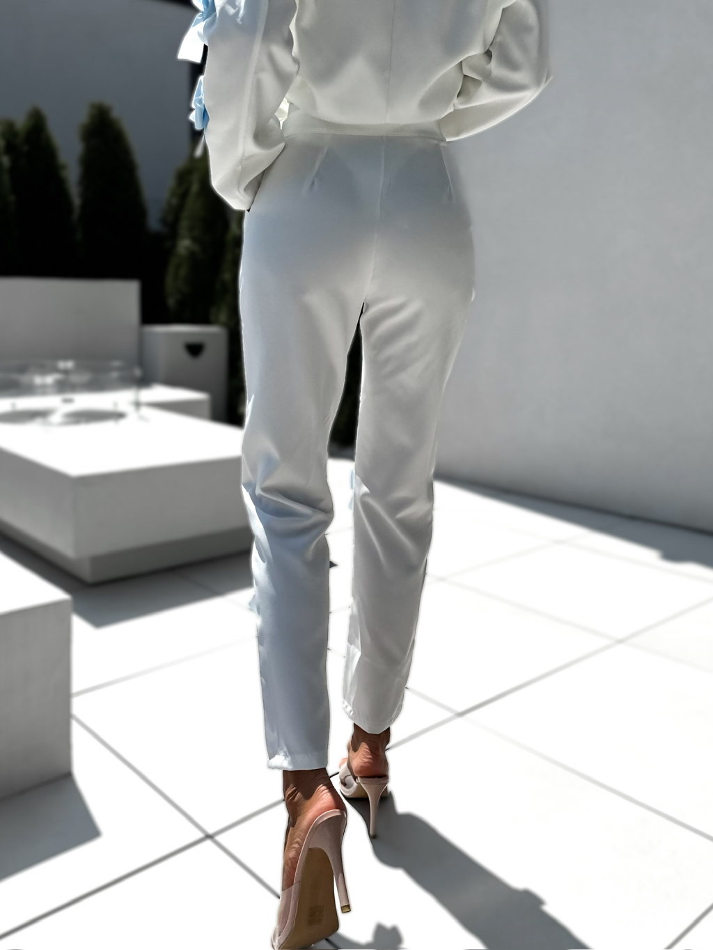 Bílé straight kalhoty QWADRO s mašlemi