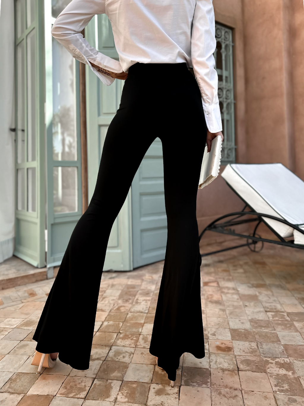 Černé elastické zvonové kalhoty MAGNESI