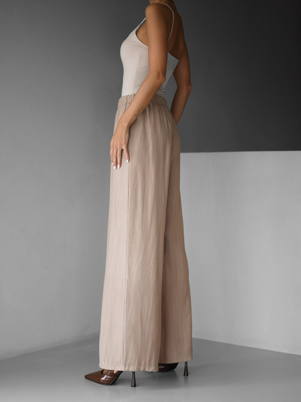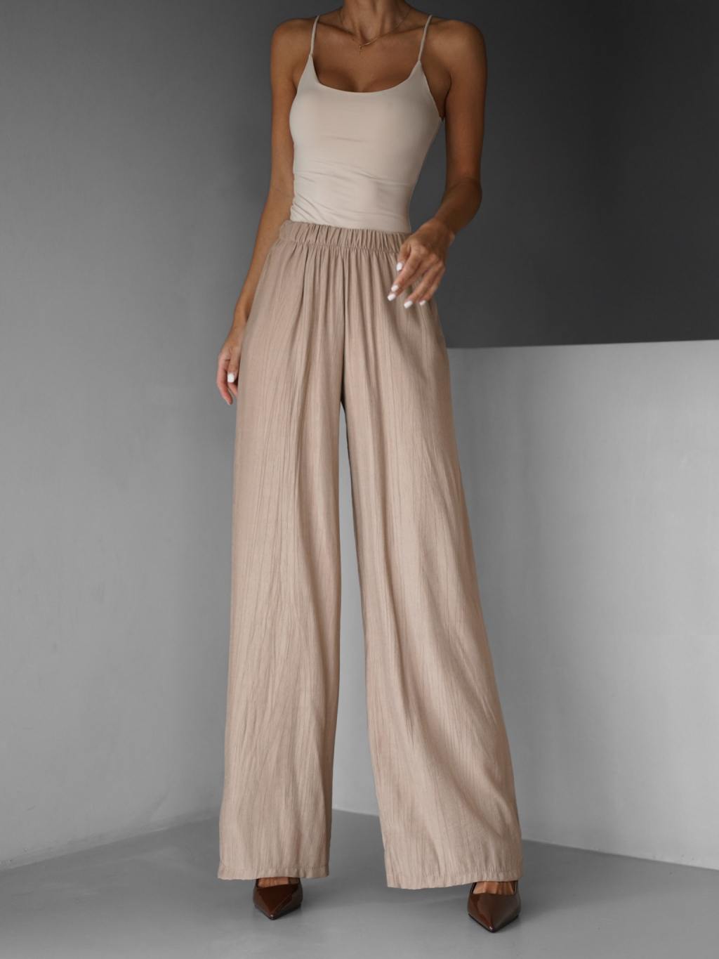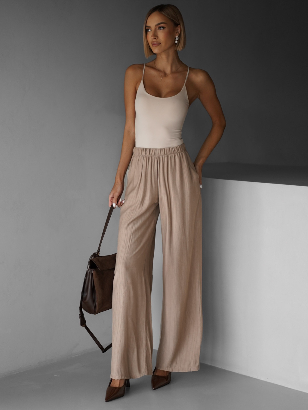 Hnědé lehké letní široké kalhoty MYSARIA