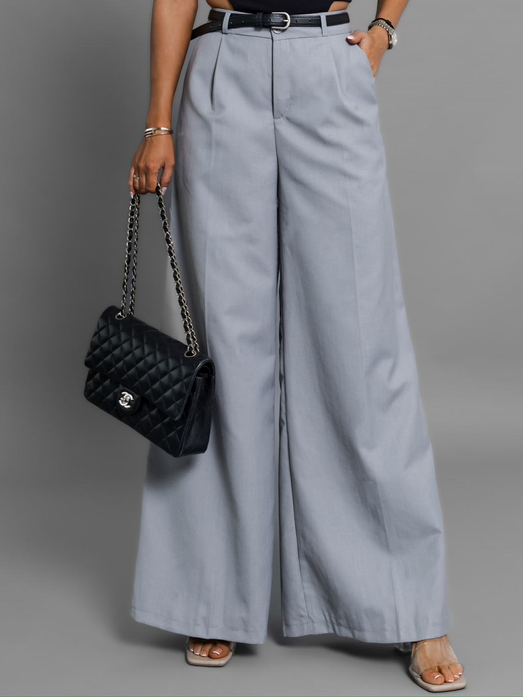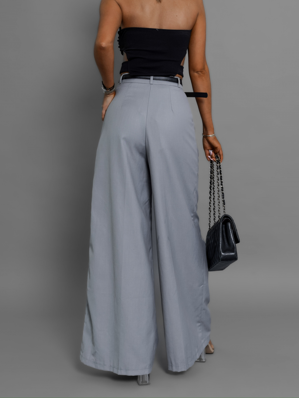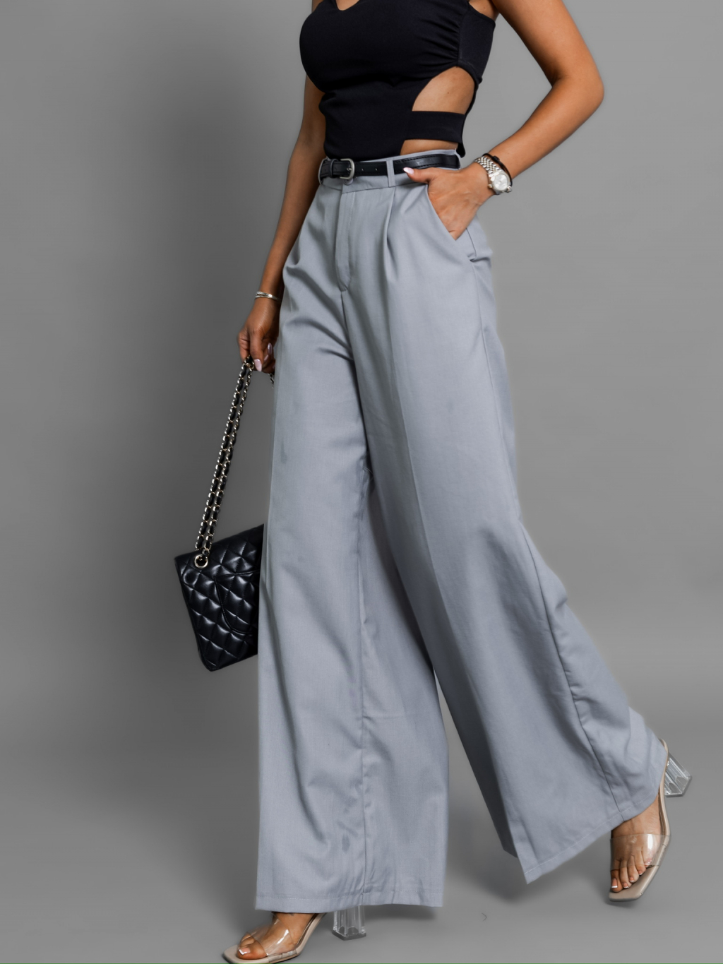Šedé společenské široké kalhoty BERGAMOT s páskem