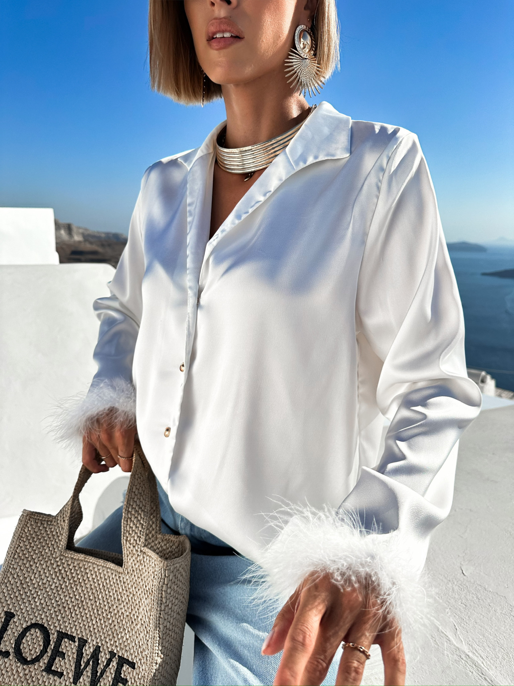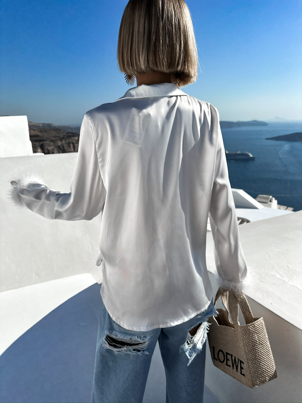 Bílá elegantní košile DURGEL s peříčky na rukávech