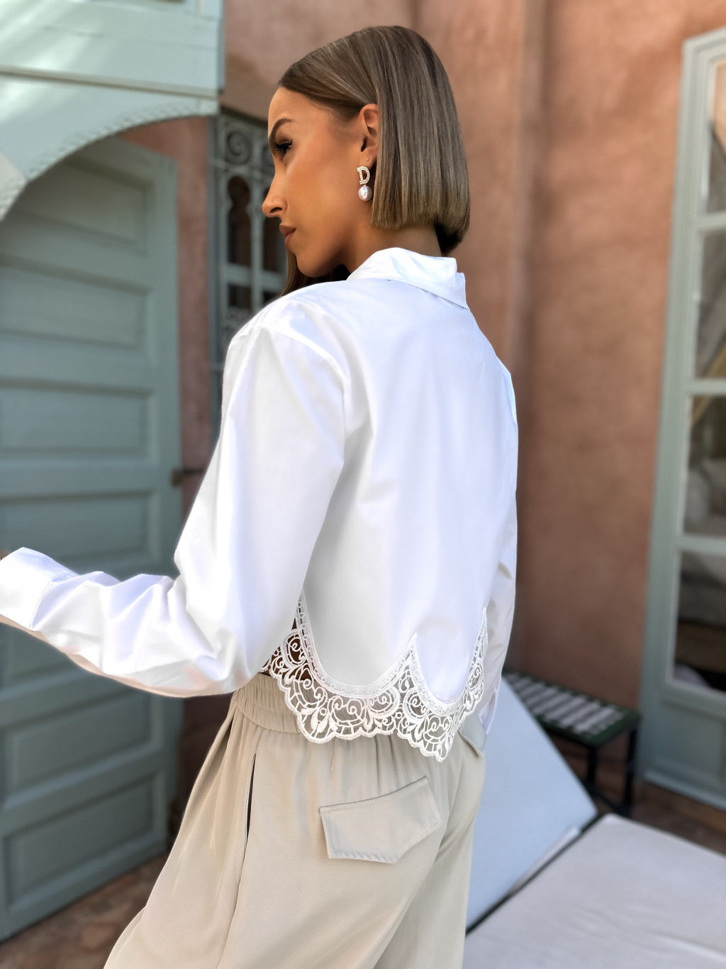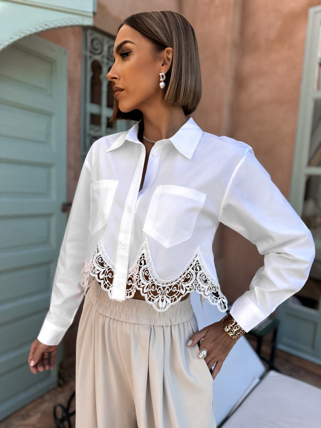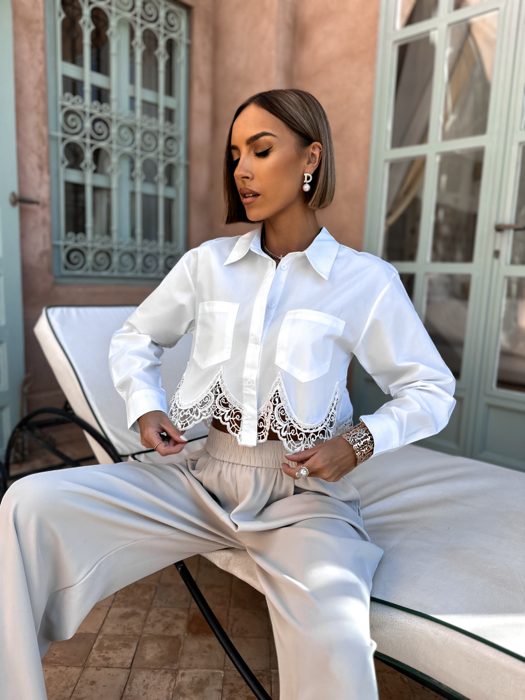 Bílá krátká košile DAWDEN s krajkou a dlouhým rukávem