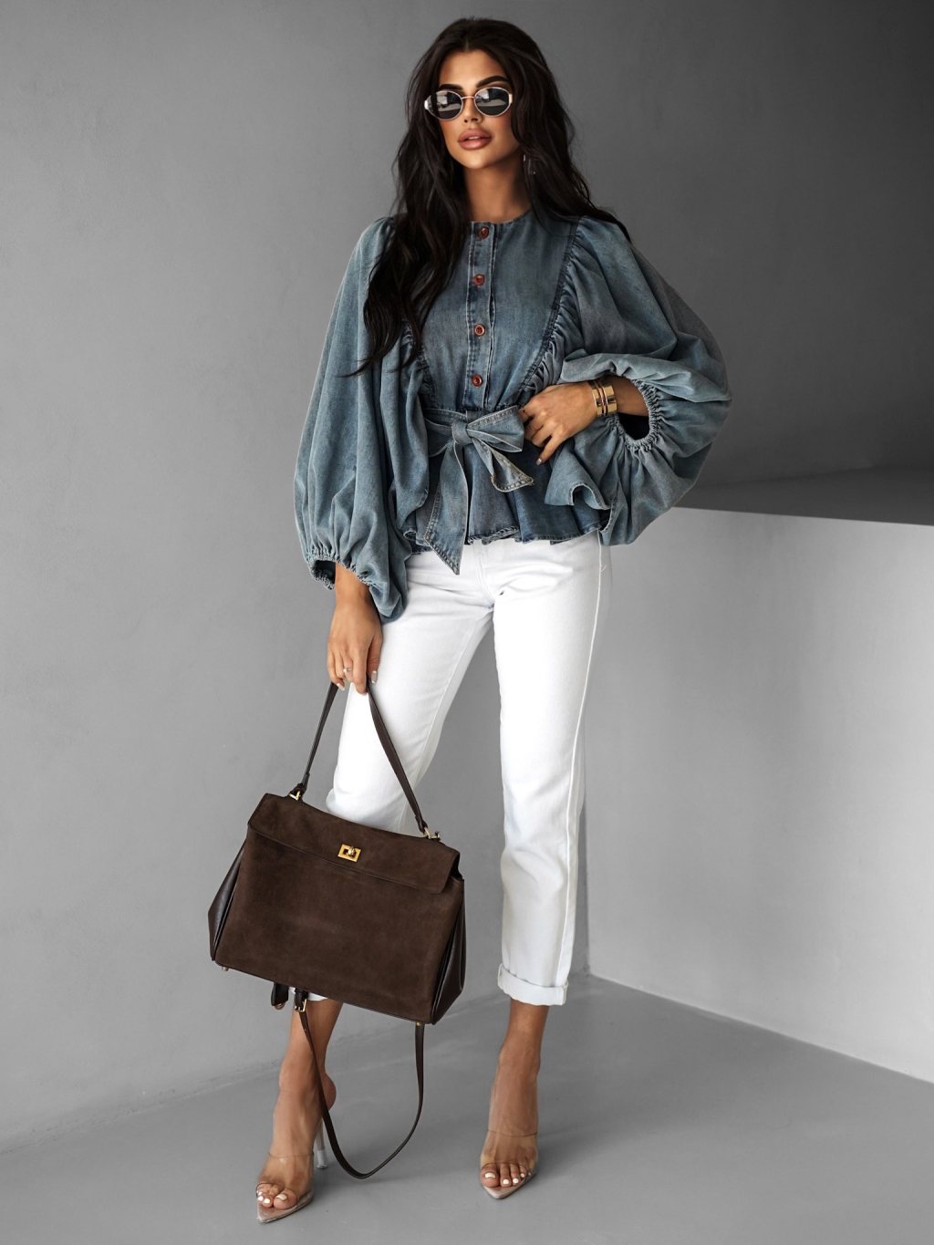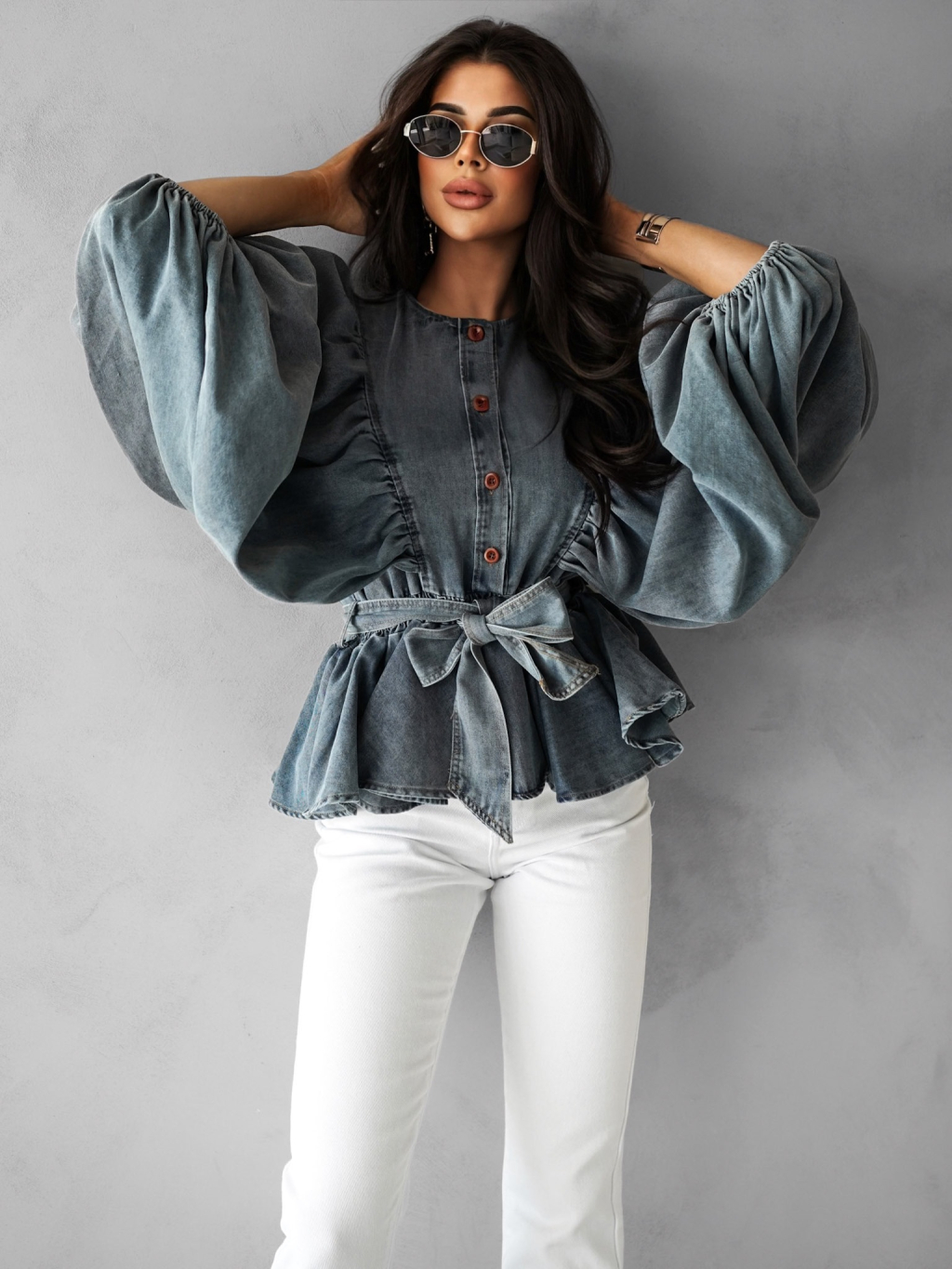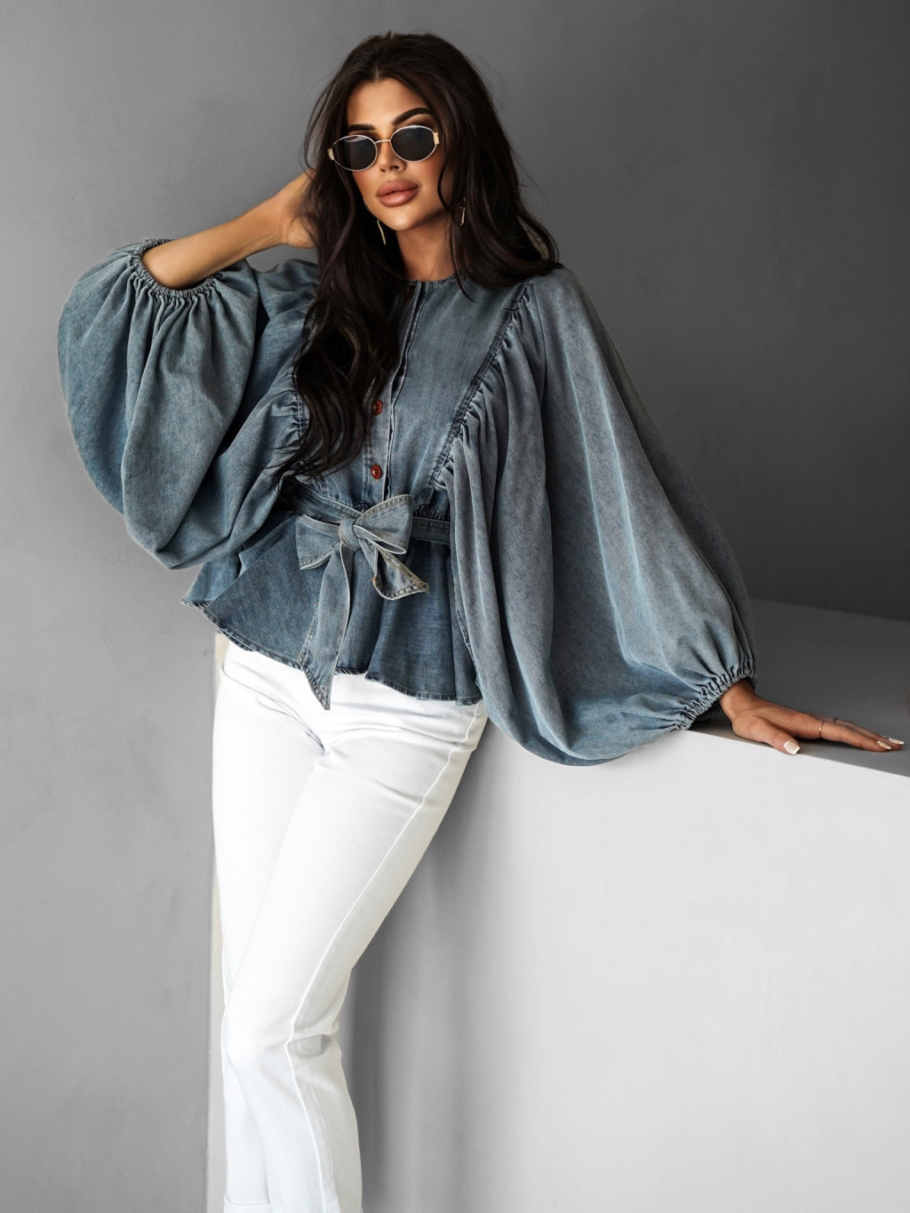 Modrá luxusní džínová halenka CHIMELY s páskem