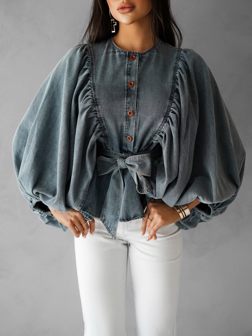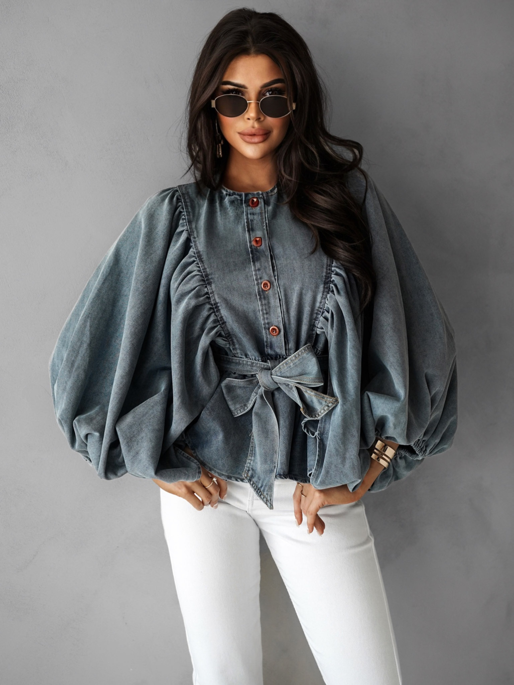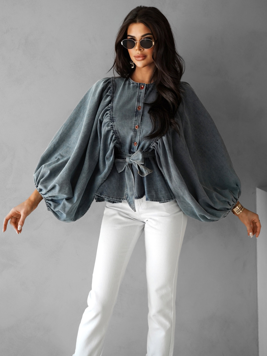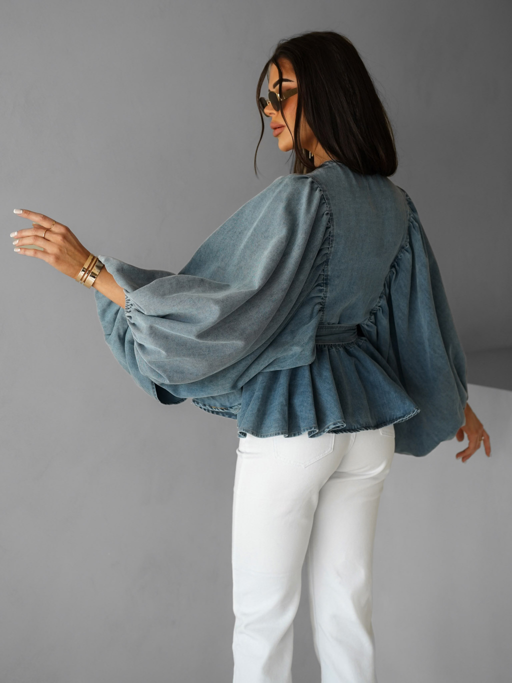 Modrá luxusní džínová halenka CHIMELY s páskem