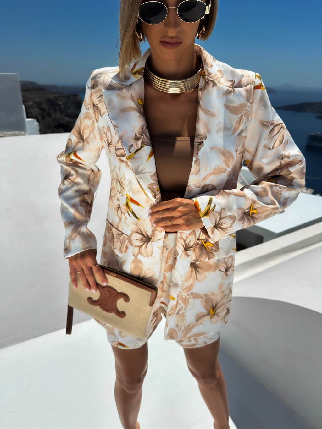 Krémový kraťasový květinový kostýmek VILJA