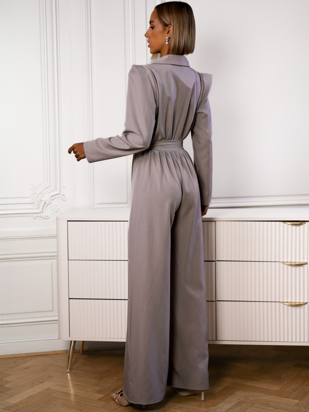 Béžový elegantní dlouhý overal BOLINA s vázáním