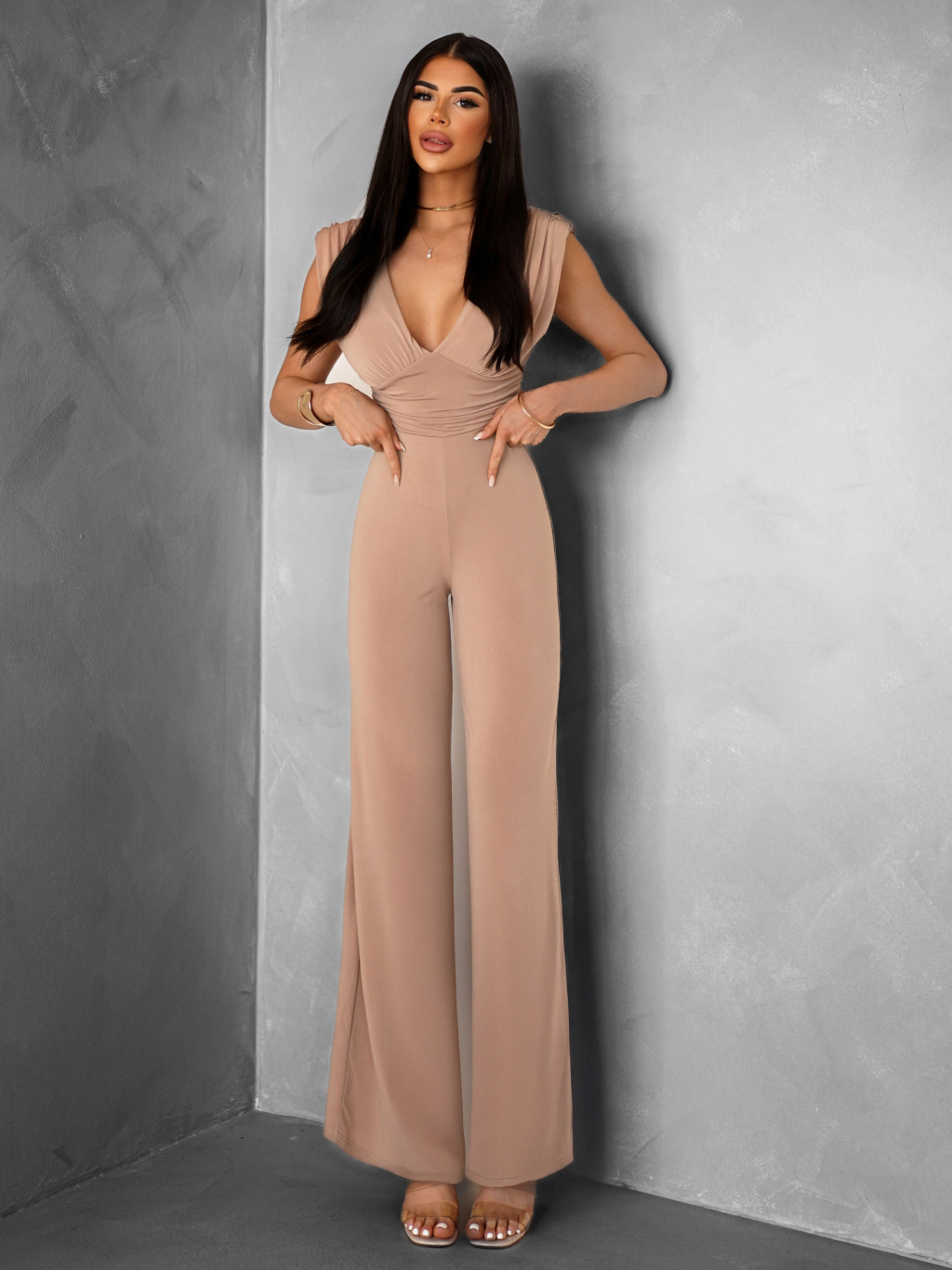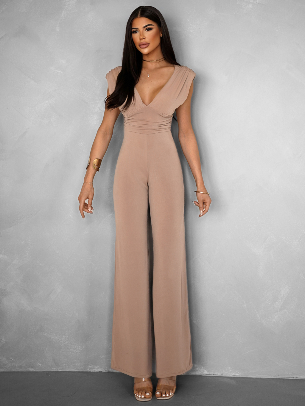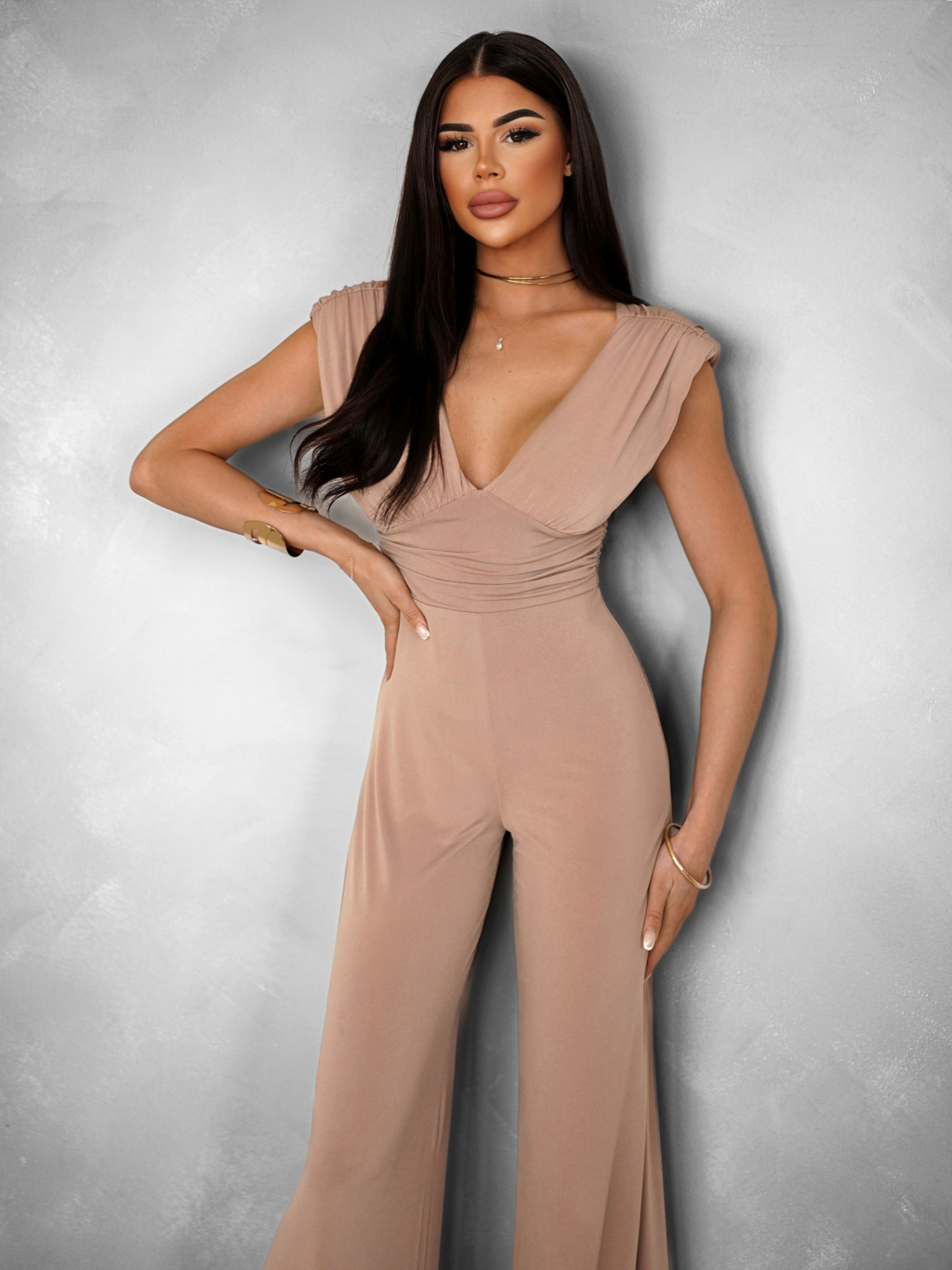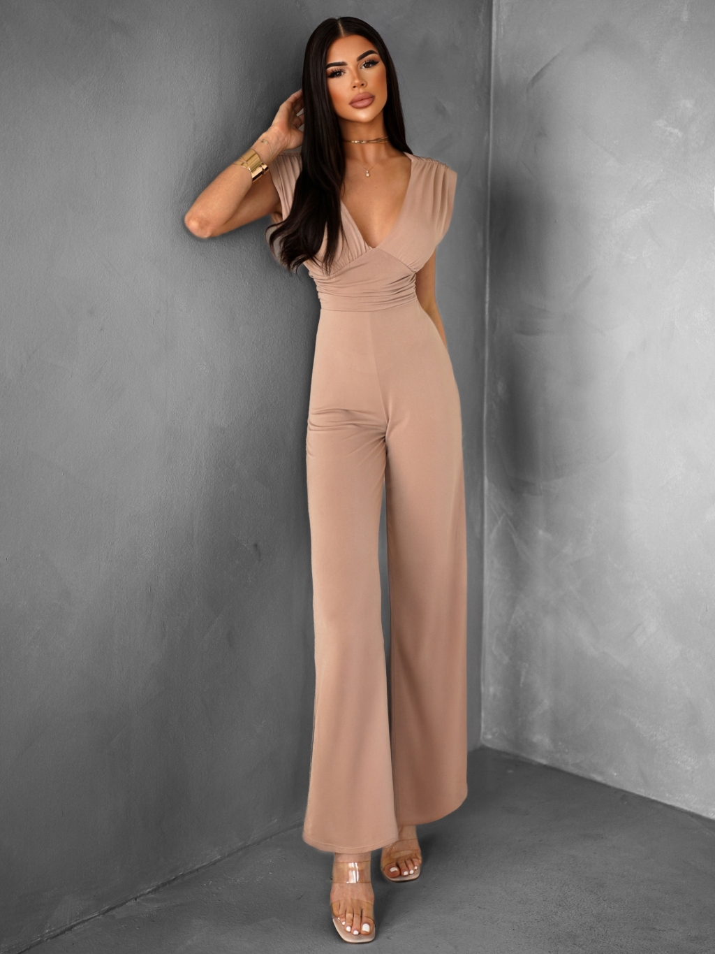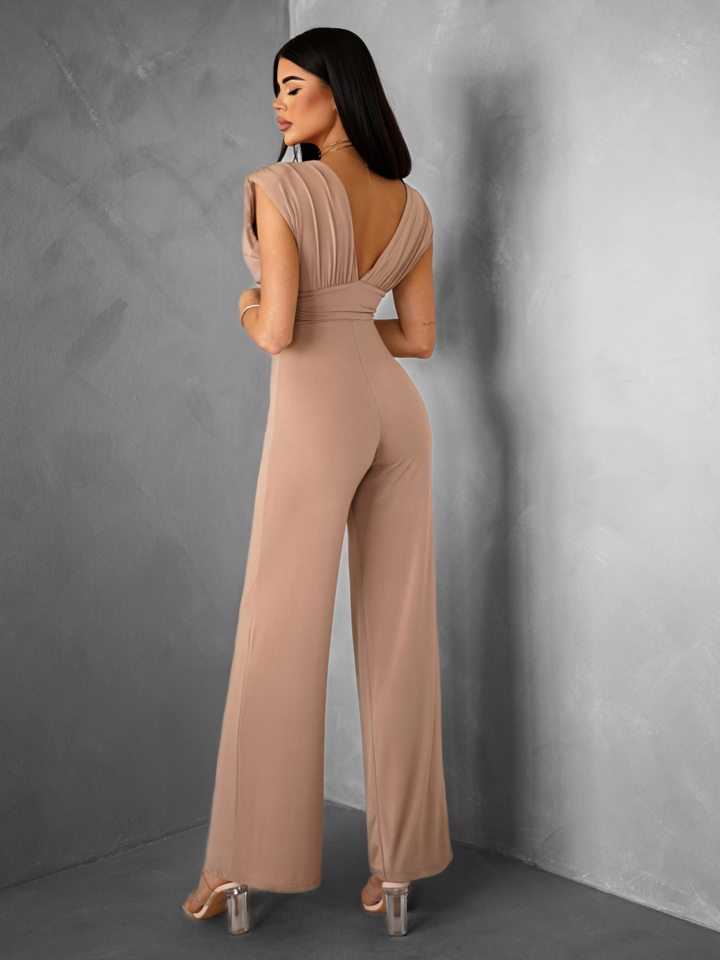 Hnědý elegantní dlouhý společenský overal ELSASA