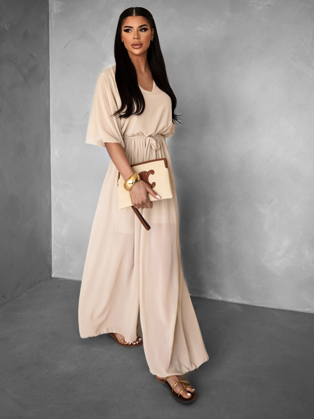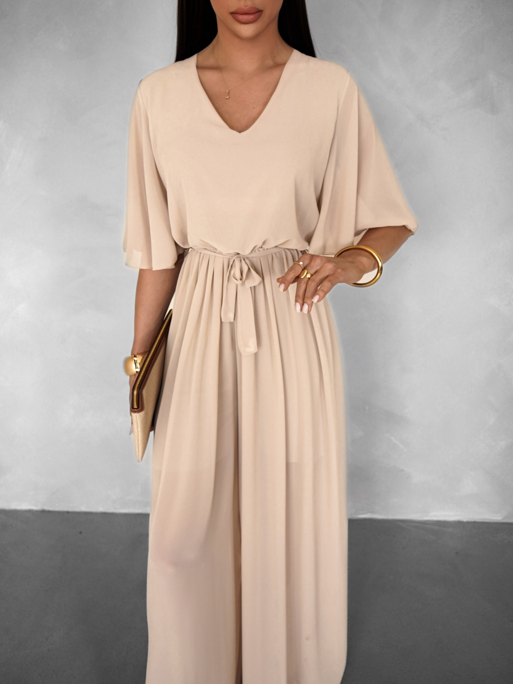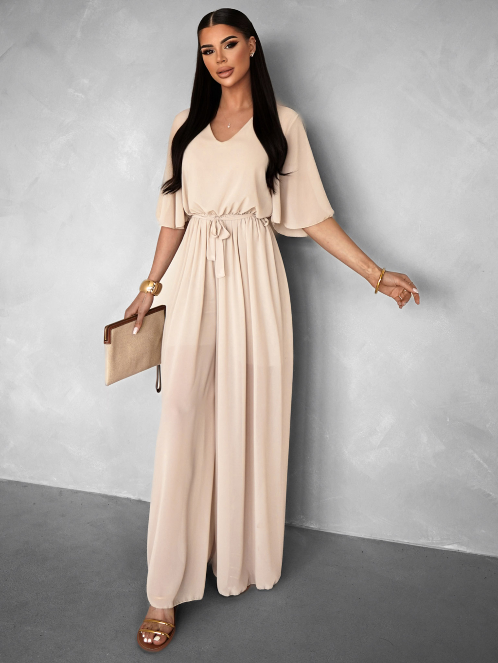 Krémový elegantní dlouhý overal LEIRIA