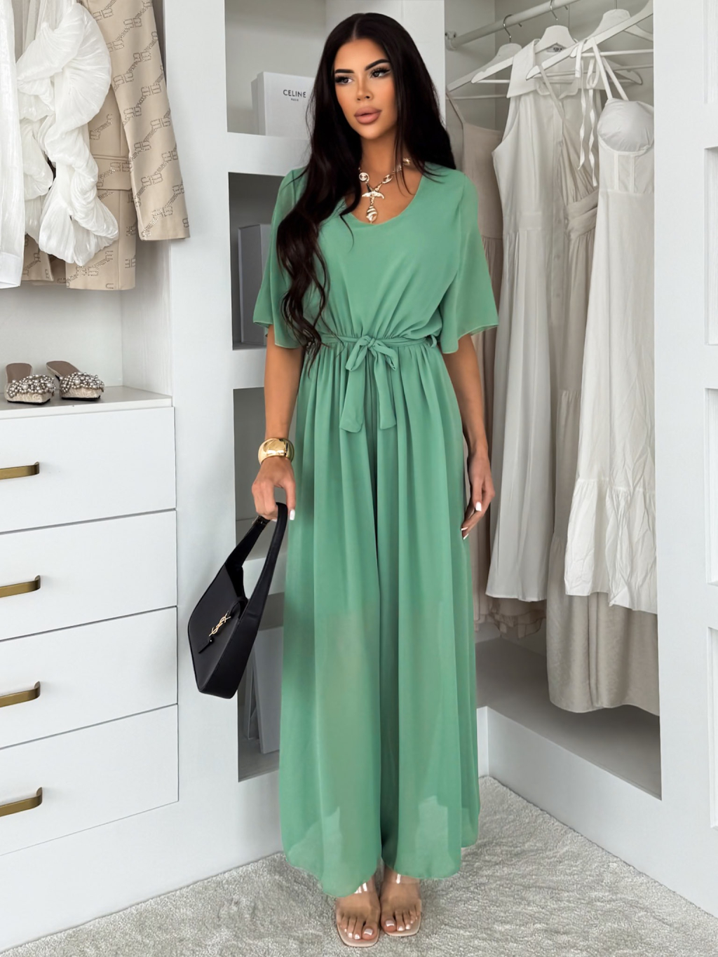 Mintový elegantní dlouhý overal LEIRIA