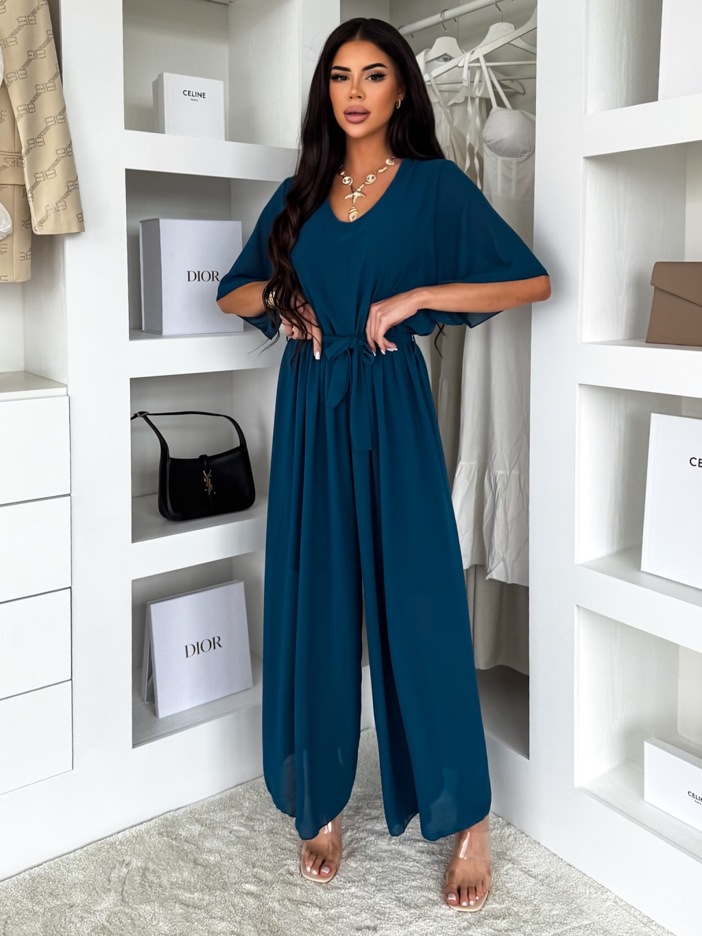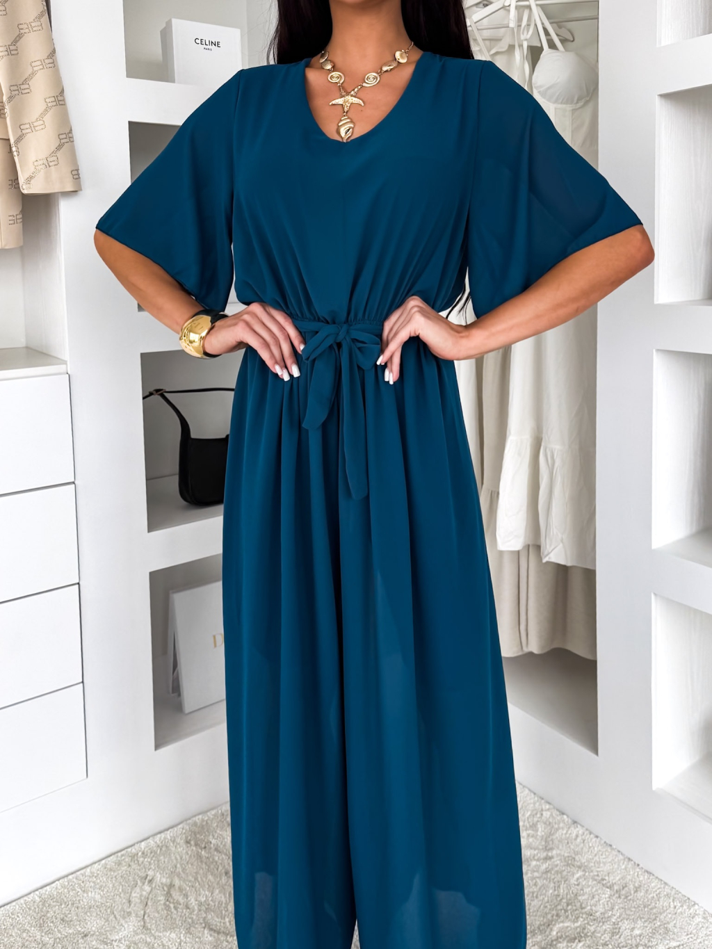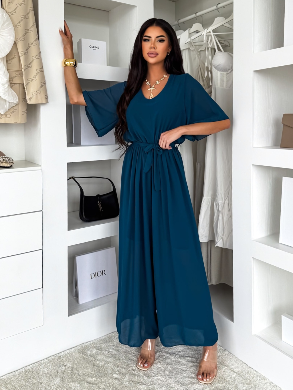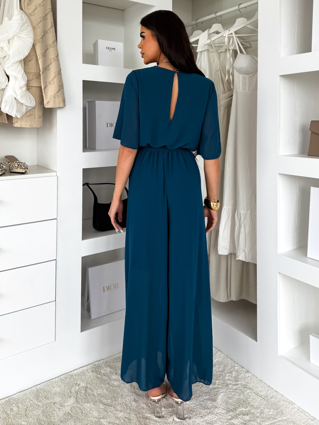Petrolejový elegantní dlouhý společenský overal LEIRIA