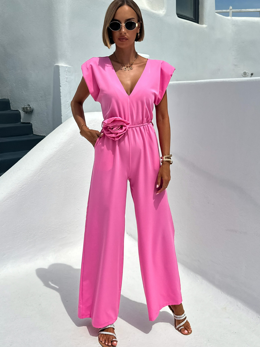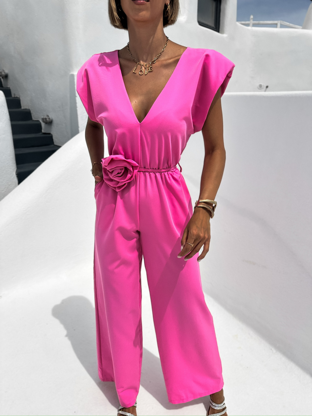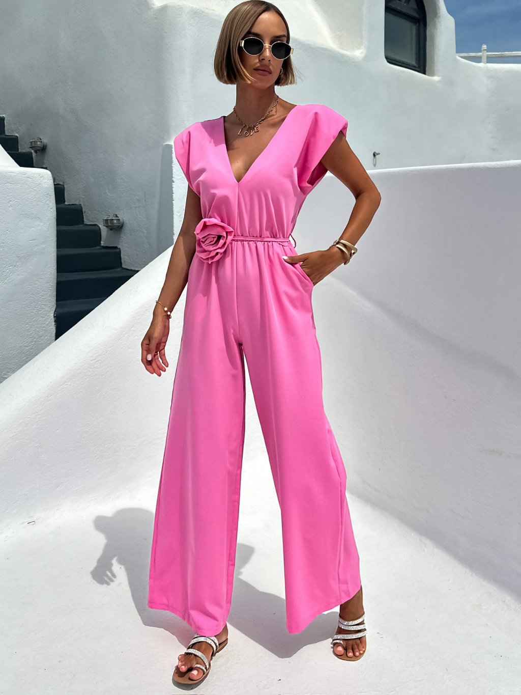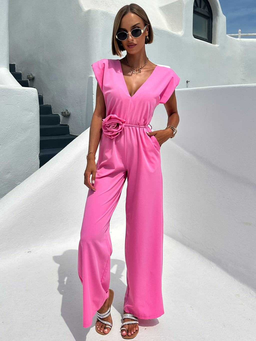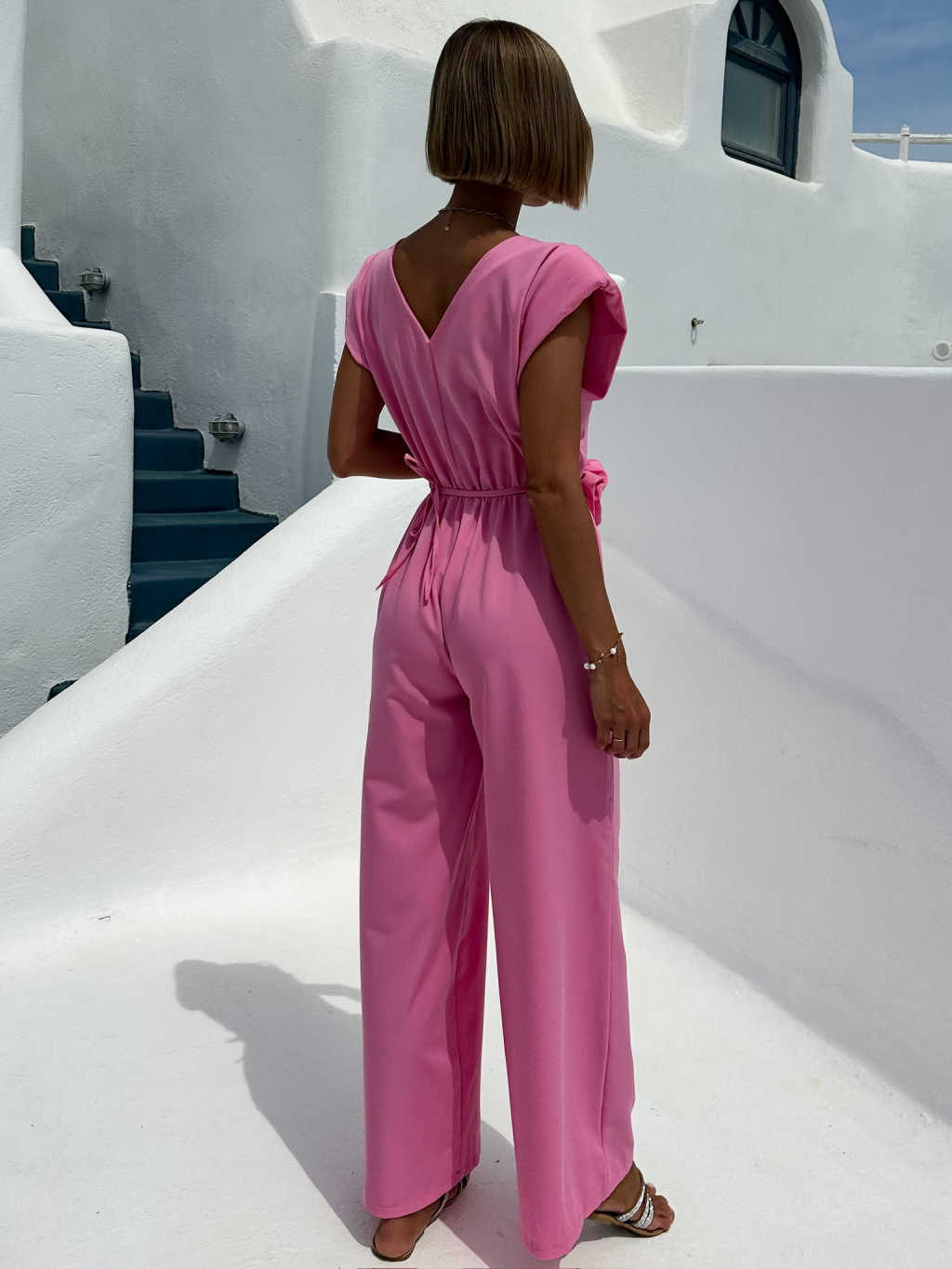 Růžový dlouhý elegantní overal KOSMAS s výstřihem