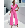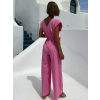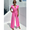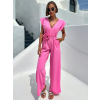 Růžový dlouhý elegantní overal KOSMAS s výstřihem
