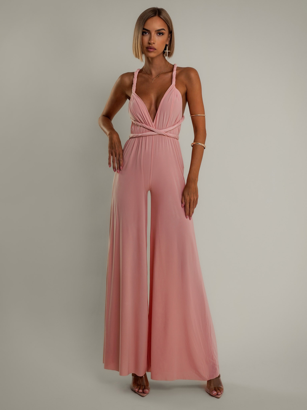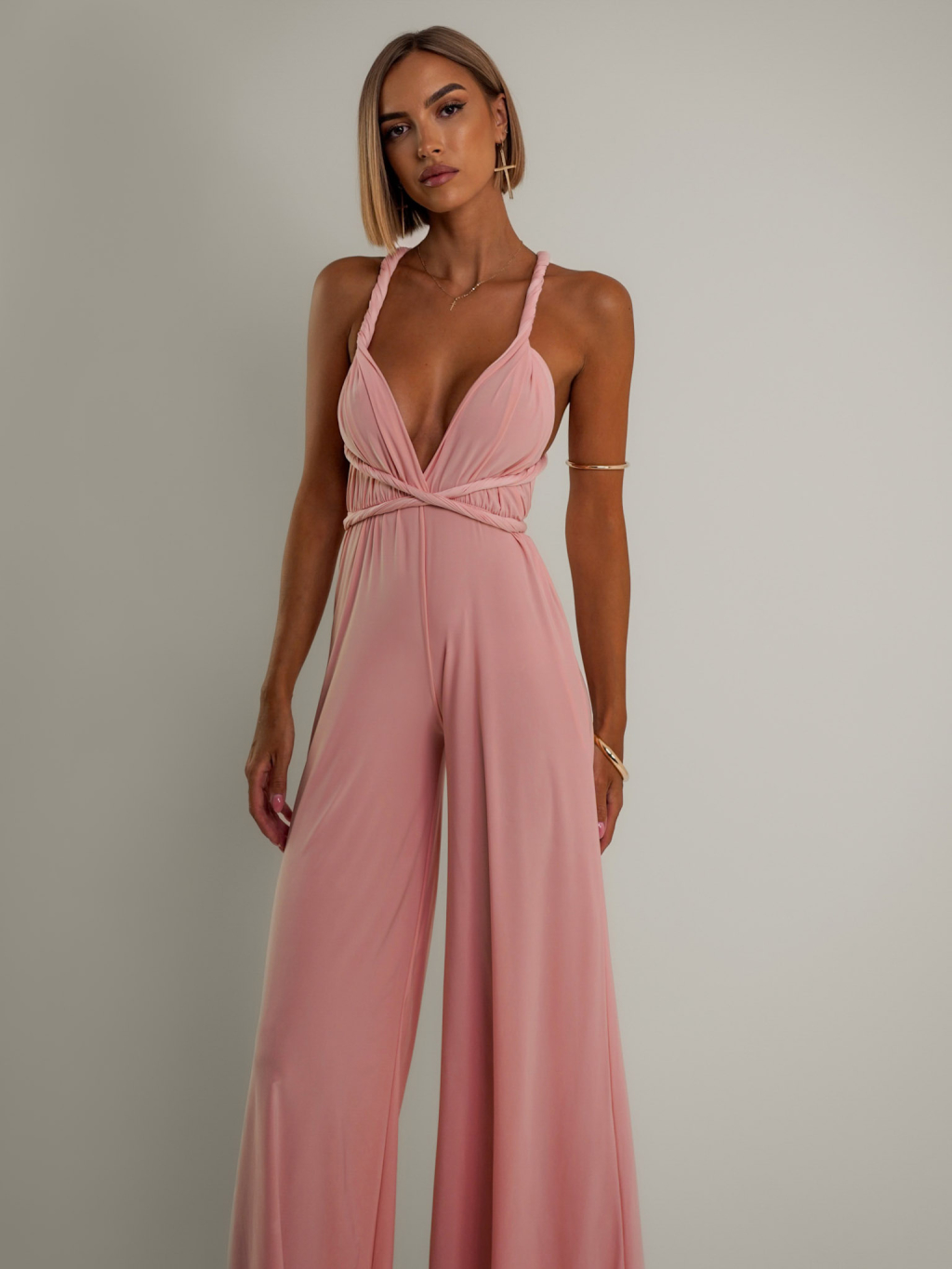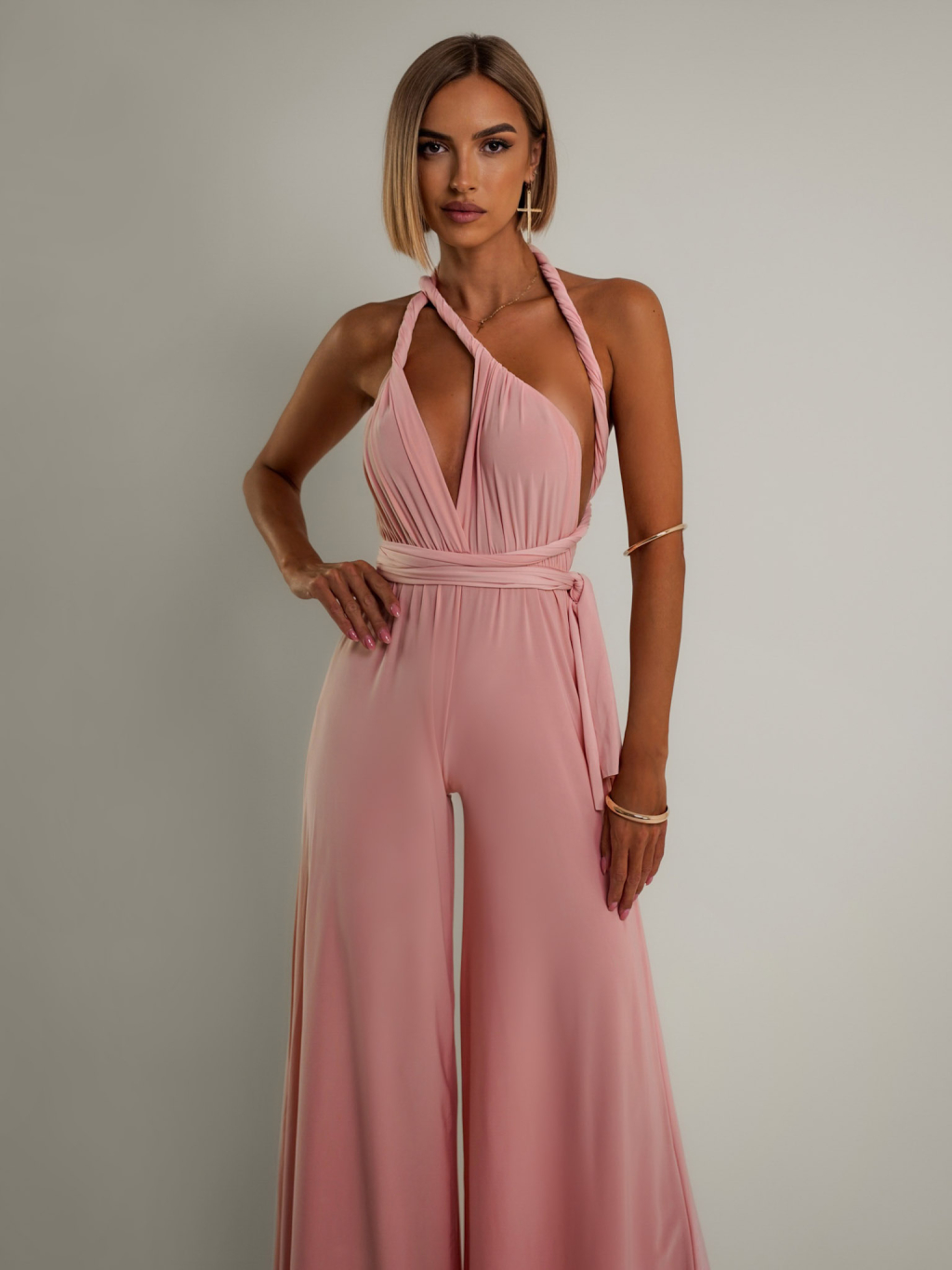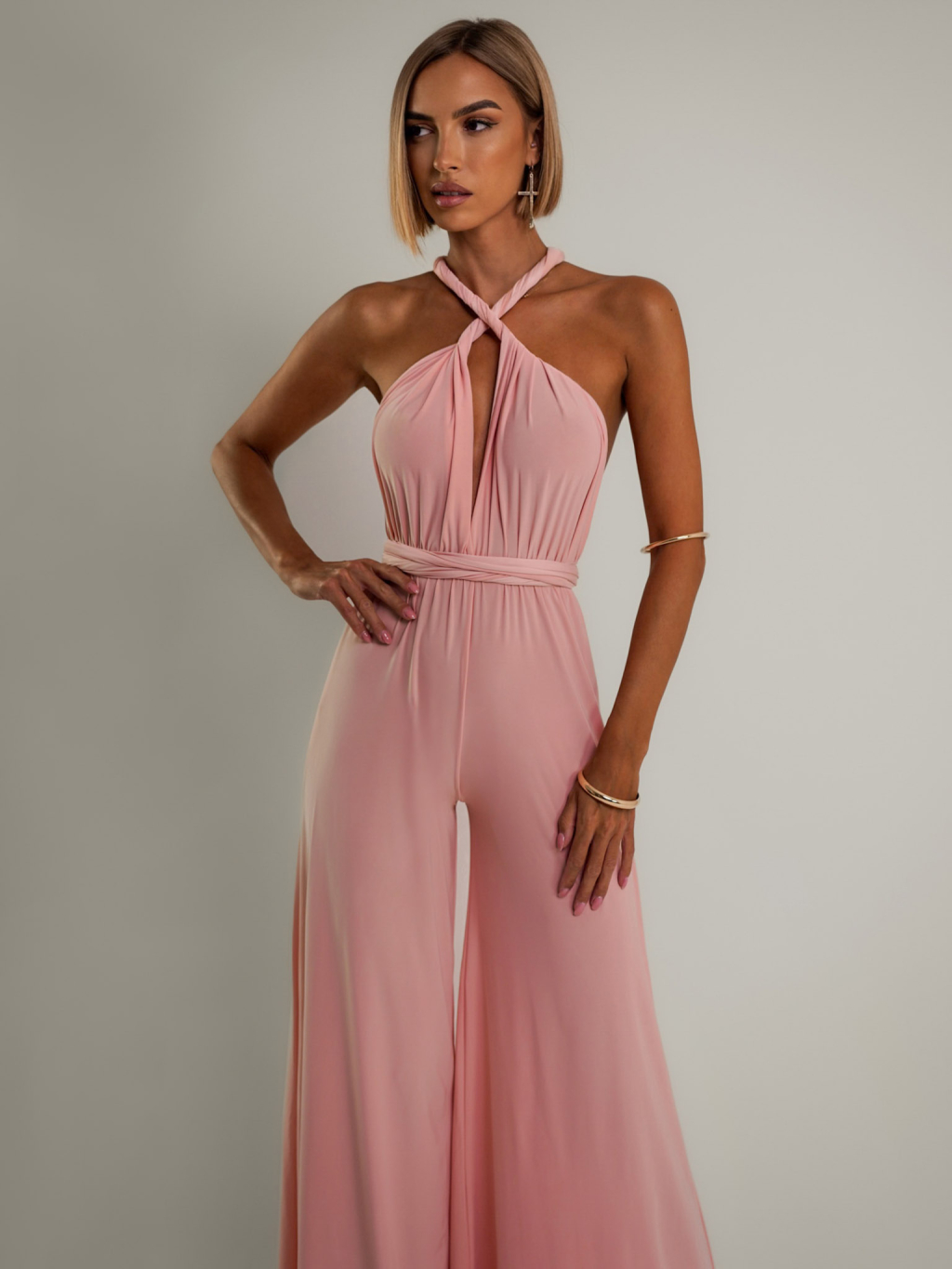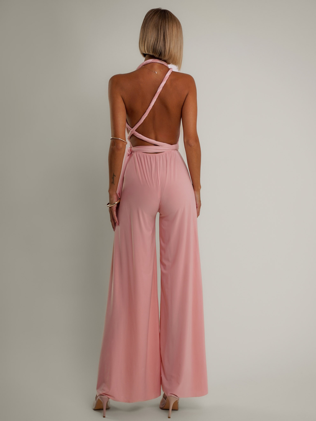 Světle růžový dlouhý variabilní overal PERCY na zavazování