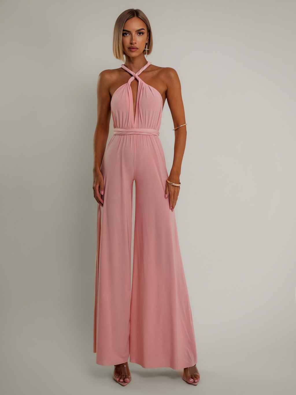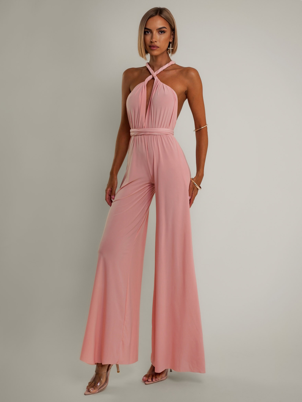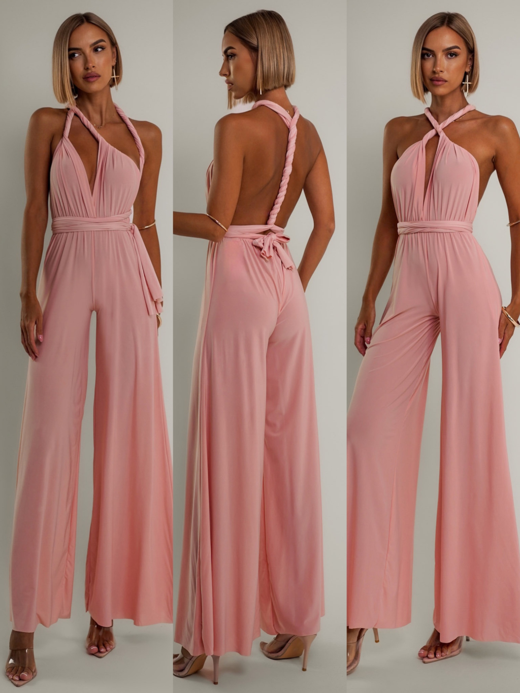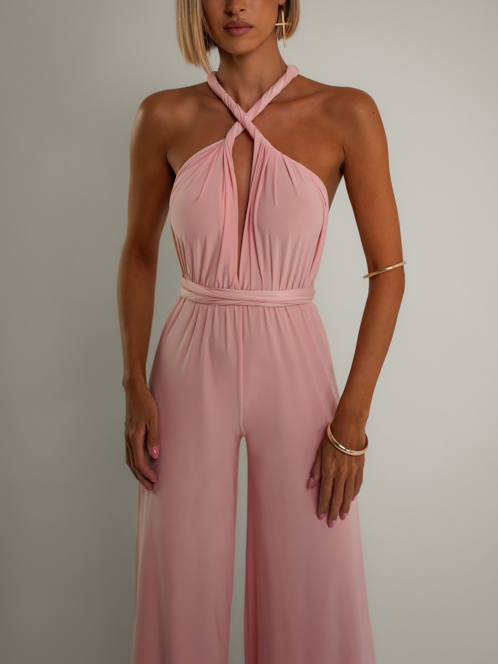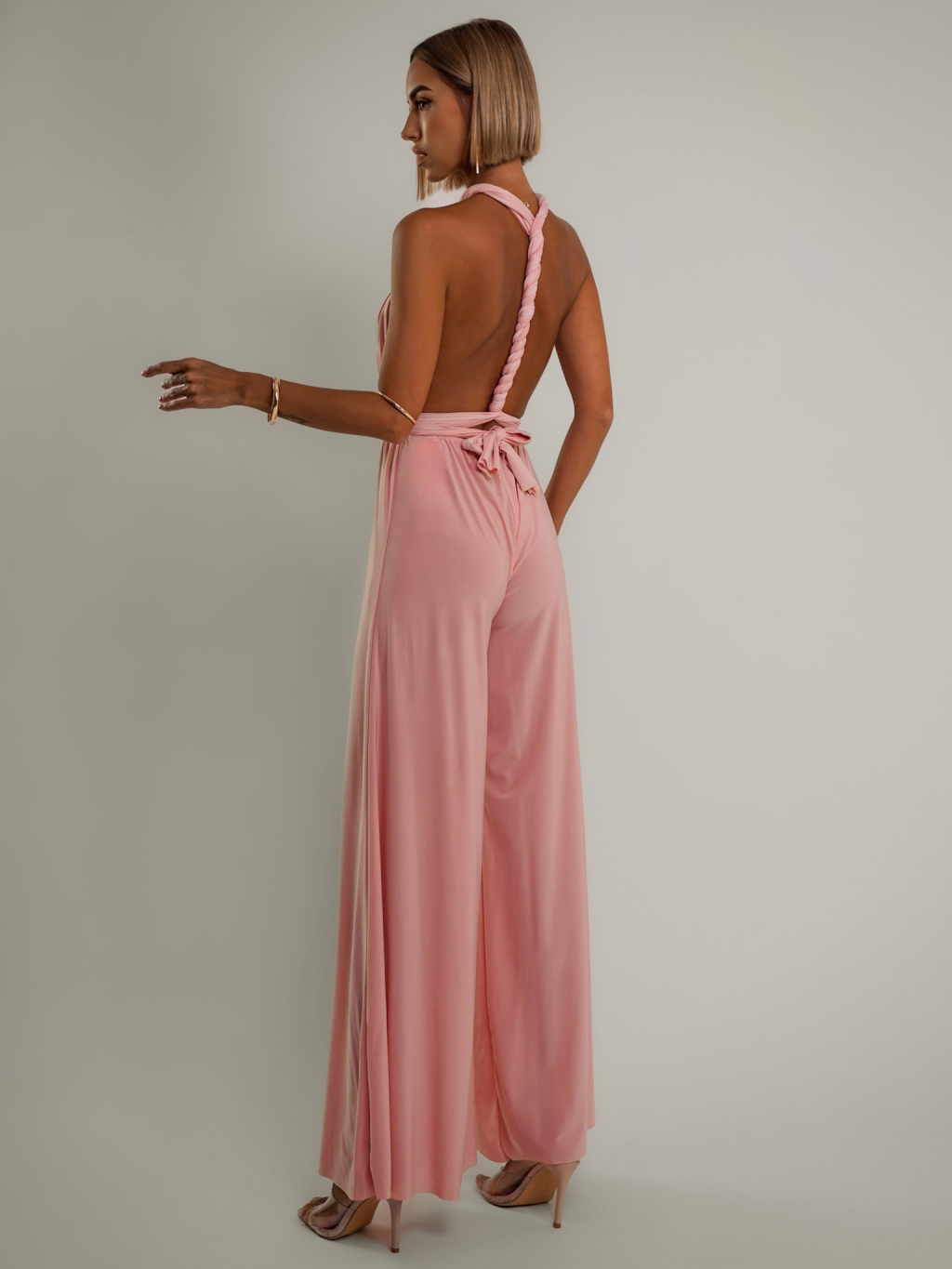 Světle růžový dlouhý variabilní overal PERCY na zavazování