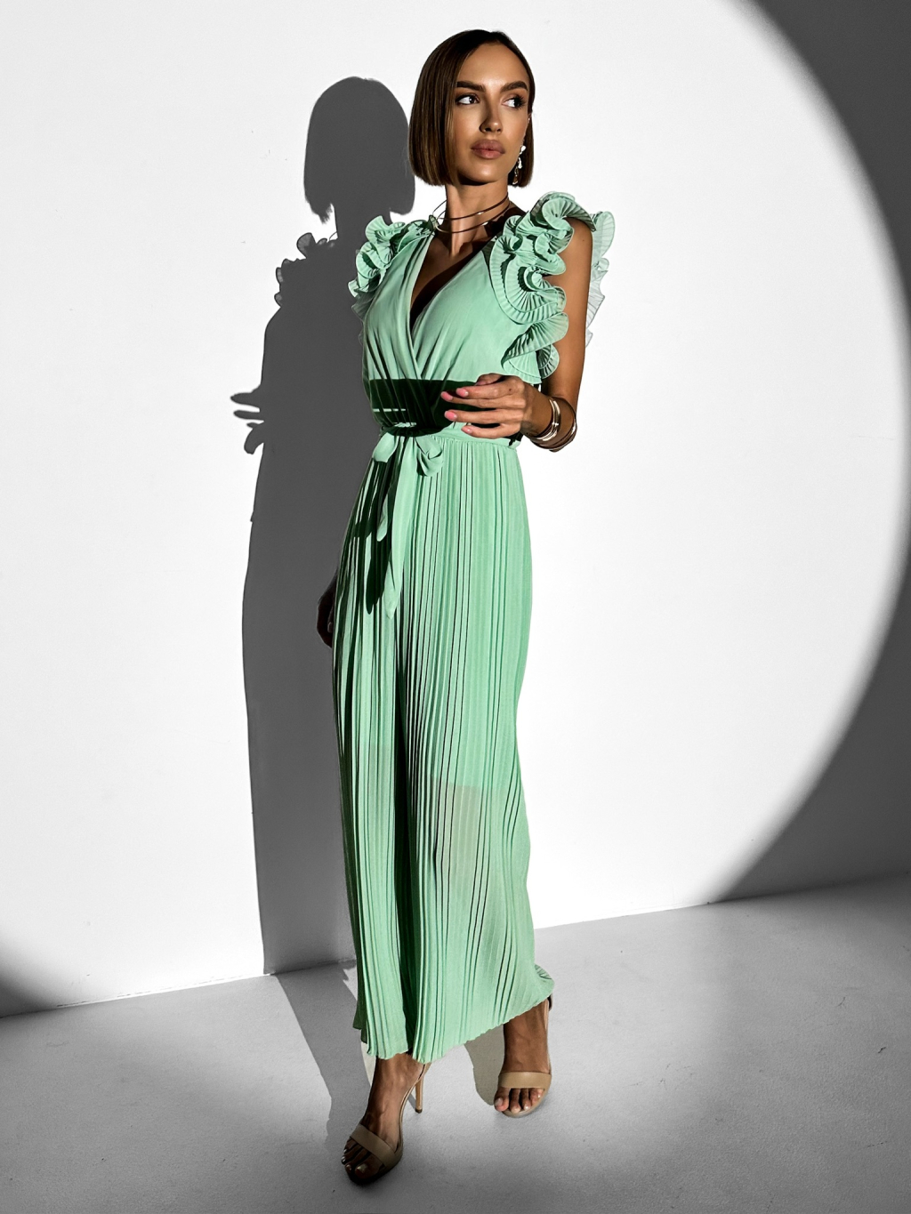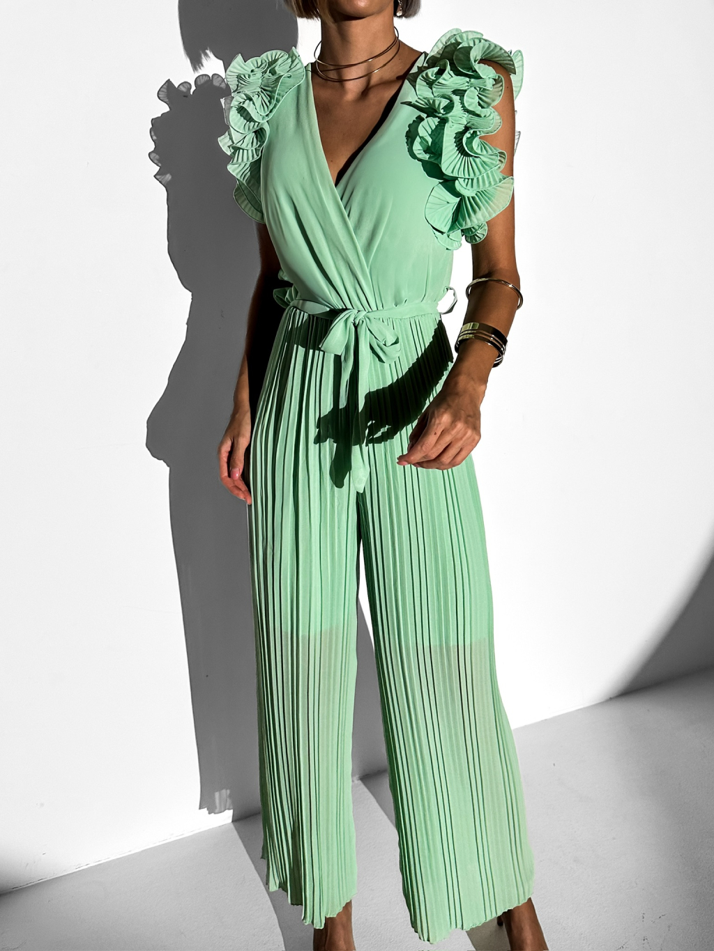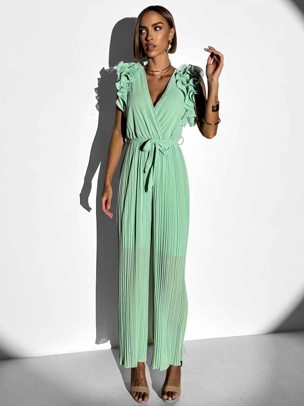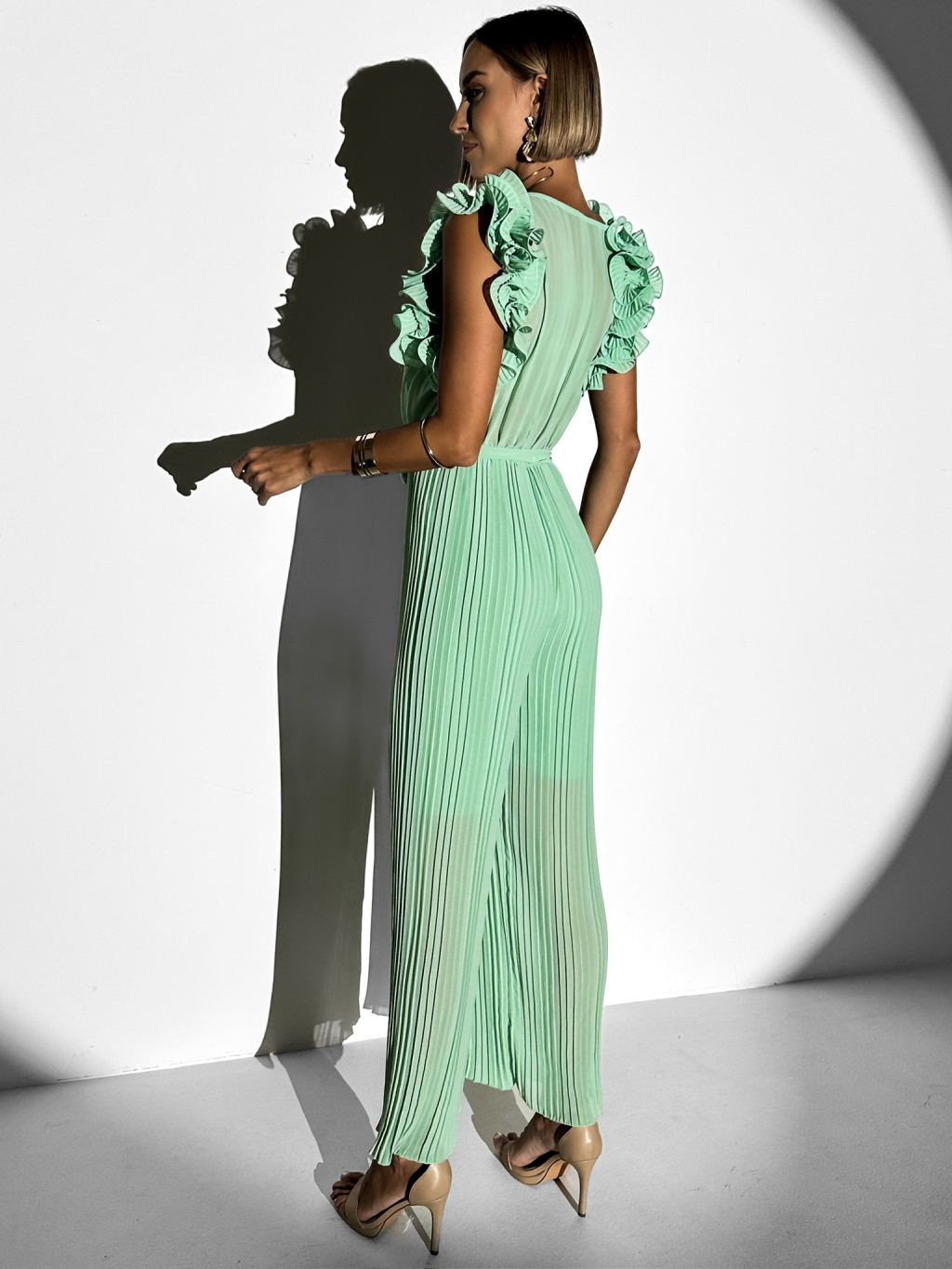 Zelený plisovaný overal TAUTRIS s volánkovými rukávy