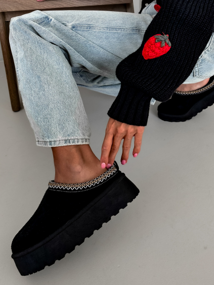 Černohnědé domácí pantofle FURLUNY s kožíškem